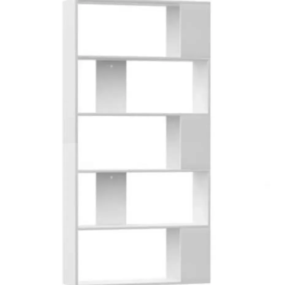 De kast is gemaakt van bewerkt hout waardoor hij stevig en duurzaam is. De boekenkast heeft 5 ruime vakken en biedt voldoende ruimte om tijdschriften, boeken, dvd’s, multimedia-apparaten en decoratieve spullen goed georganiseerd en binnen handbereik te houden. Het meubel is zeer veelzijdig, omdat het ook als kamerscherm gebruikt kan worden. Het is geschikt voor in je gang of andere woonruimte.