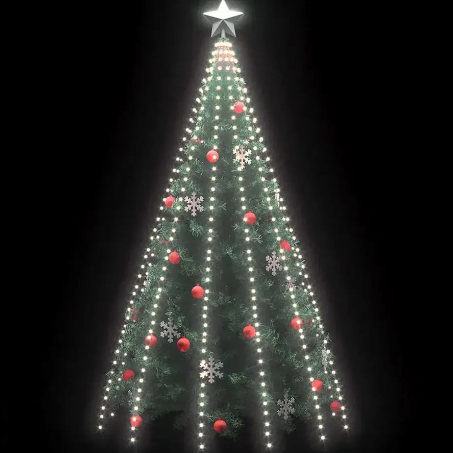 De verlichting bestaat uit 500 LED’s en is ontworpen met 8 verschillende effecten: een combinatie van alle effecten, langzaam gloeiend, twinkelend/flitsend, golvend, jagend/stromend water, sequentieel, constant aan en langzaam vervagend. Ze lichten prachtig op en creëren een magische kerstsfeer. Deze mooie kerstdecoratie is waterbestendig en daardoor geschikt voor zowel binnen als buiten. Je kunt deze decoratie eenvoudig in de top van je kerstboom plaatsen, dan vallen de lichtsnoeren vanzelf naar de grond. De verlichting is een echte blikvanger, vooral ’s avonds, en dient ook als een gezellige bron van omgevingslicht. Wanneer ze niet in gebruik zijn, kunnen deze LED-lampjes gemakkelijk worden opgeslagen tot de volgende kerst.
