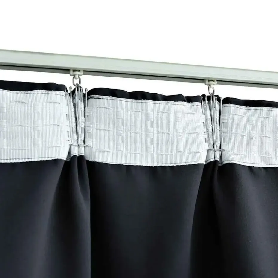 Het gordijn heeft een simpel, tijdloos ontwerp. Dankzij de metalen haken kunnen de gordijnen eenvoudig aan gordijnrails opgehangen worden. De gordijnen zijn gemaakt van premium polyester en kunnen in de wasmachine worden gewassen.