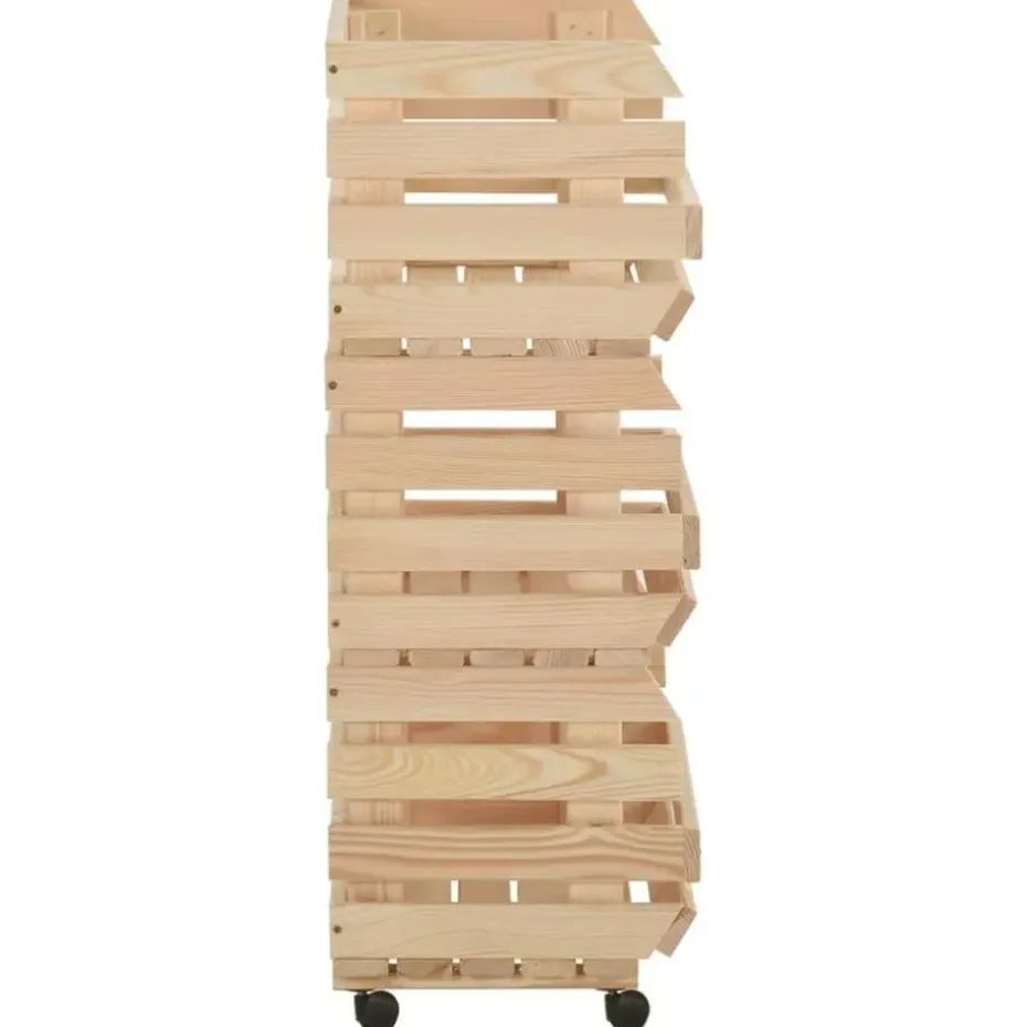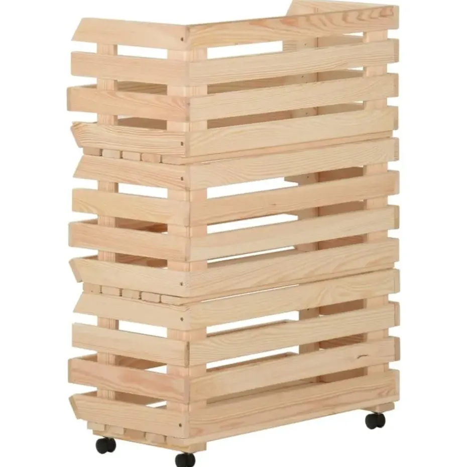 Deze fruitkist is gemaakt van massief grenenhout, waardoor hij stabiel en duurzaam is. De opbergtrolley heeft 3 vakken om etenswaren, flessen en andere benodigdheden binnen handbereik te plaatsen. Dankzij het afneembare ontwerp kun je elk schap naar behoefte afzonderlijk gebruiken. Daarnaast is de keukentrolley voorzien van flexibele wielen zodat hij gemakkelijk verplaatst kan worden.