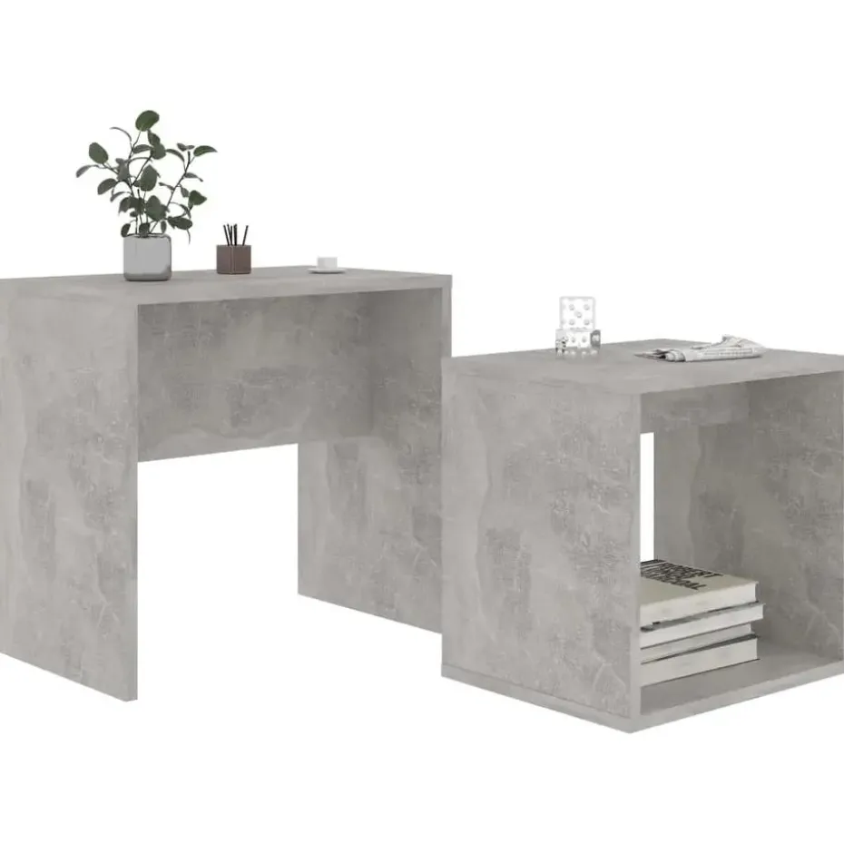 Onze 2-delige tafeltjesset is de perfecte oplossing voor kleine flats of andere plekken waar ruimte beperkt is. Het eigentijdse ontwerp maakt deze set een chique aanvulling op je woonkamer, slaapkamer of kantoor.