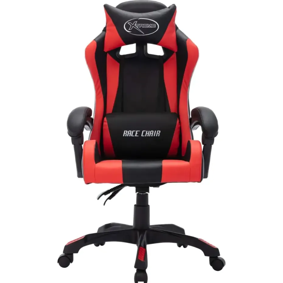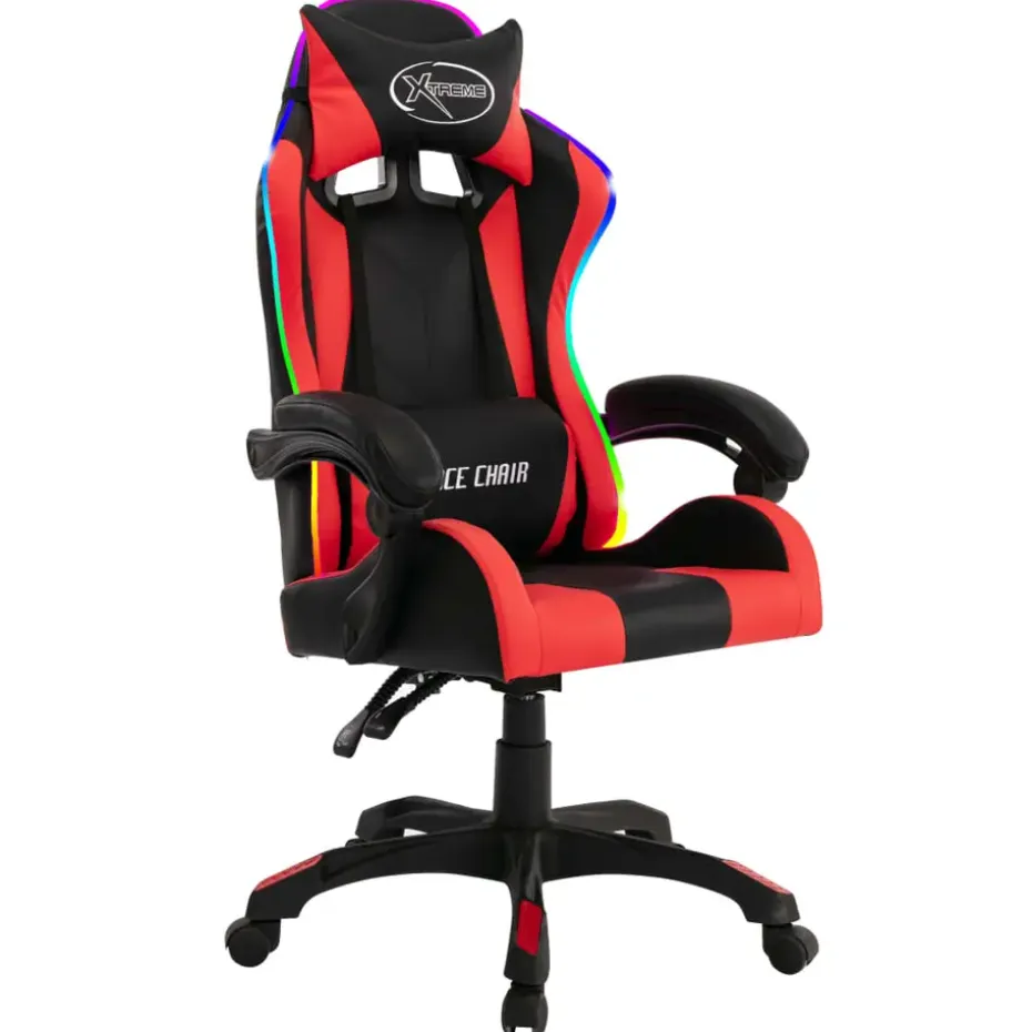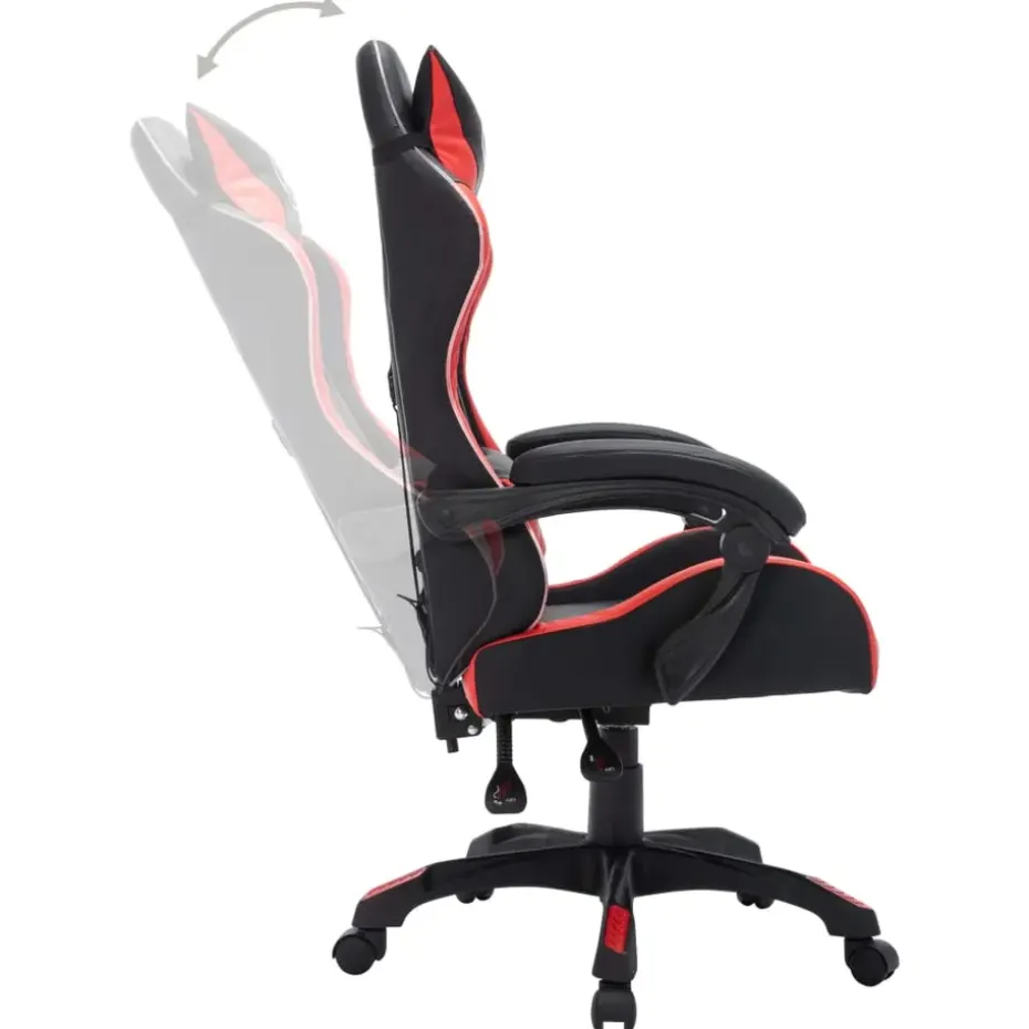 Deze gamestoel is bekleed met kunstleer, waardoor hij gemakkelijk schoon te maken is. Het meegeleverde dik gevoerde hoofdkussen en taillekussen zorgen voor extra comfort tijdens een drukke werkdag. Dankzij het gasveermechanisme is deze bureaustoel in hoogte verstelbaar. Hij kan ook naar achteren versteld worden, dus als je zin hebt om te dutten plaats je de rugleuning eenvoudig in een volledig achteroverleunende positie. Bovendien maken het 360 graden draaibare ontwerp en de 5 wieltjes het gemakkelijk om de stoel te verplaatsen. De rand van de rugleuning is voorzien van LED-verlichting, waardoor je een betere speelsfeer krijgt. Je kan de kleur en verlichtingsmodi eenvoudig wijzigen middels de afstandsbediening.