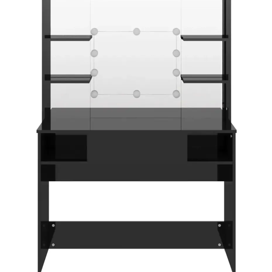 Deze kaptafel, gemaakt van MDF, heeft een strak en beknopt silhouet met een moderne stijl. Hij biedt voldoende ruimte voor make-upartikelen en houdt alles op zijn plaats. Kaptafelspiegel: de prachtige spiegel biedt duidelijk zicht om je make-up aan te brengen en voegt een vleugje elegantie toe aan de kaptafel. De afgebeelde elegante LED-lampen verlichten ook je schoonheid.