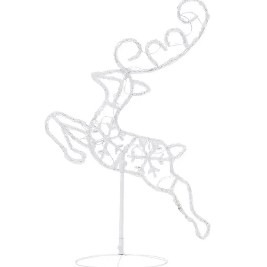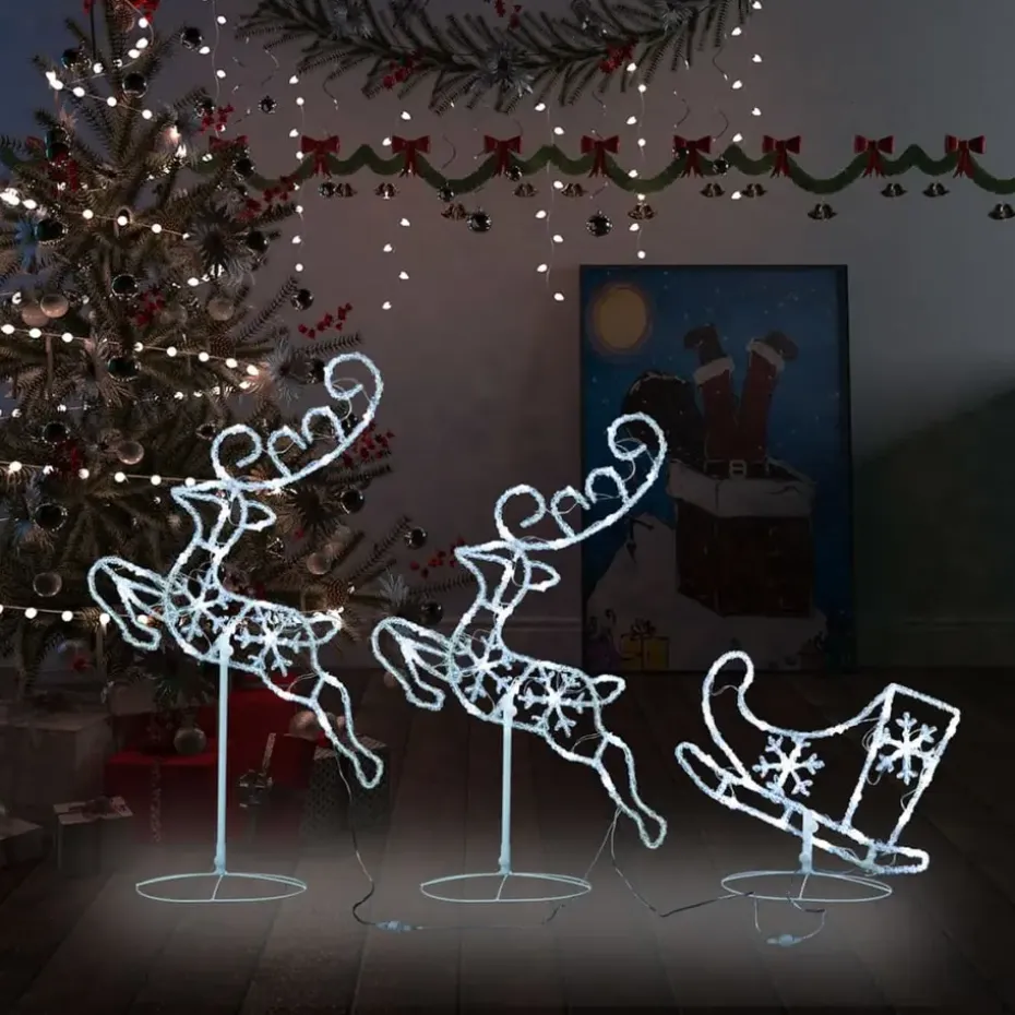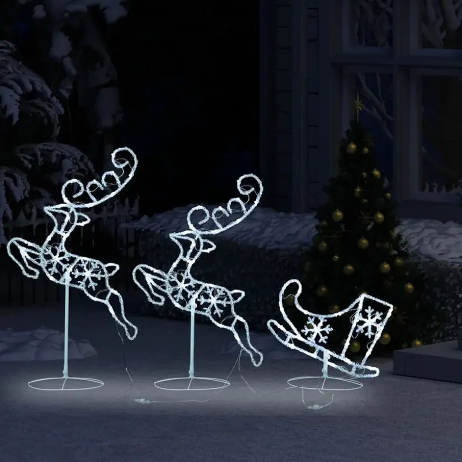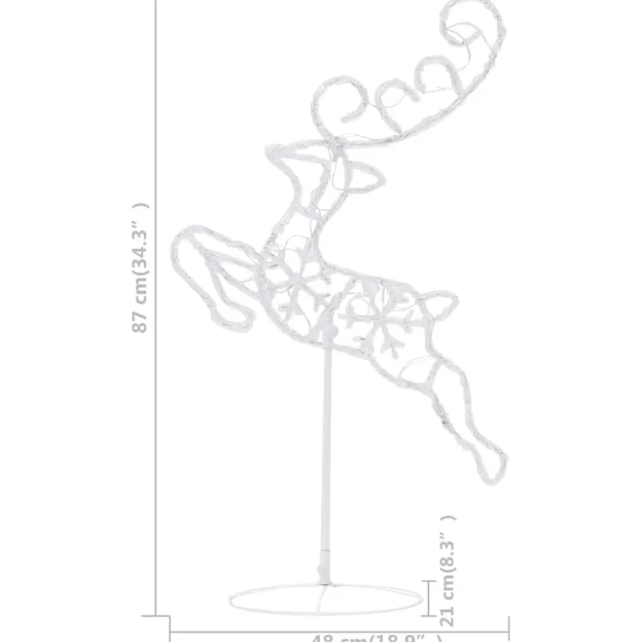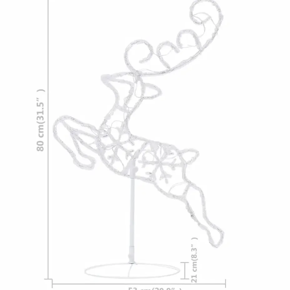 Dit kerstfiguur is gemaakt van acryl en oogt koel en ijzig. De lichtgevende rendieren met slee bevatten 72 LED-lampjes, die energiezuinig en duurzaam zijn. De kerstdecoratie is ontworpen met 8 verschillende lichteffecten: een combinatie van alle effecten, langzaam gloeiend, glinsterend/flitsend, golvend, achtervolging/stromend water, sequentieel, constant aan en langzaam uitgaand. De set geeft prachtig licht en creëert een magische kerstsfeer. Bovendien draagt de meegeleverde standaard bij aan de stabiliteit.