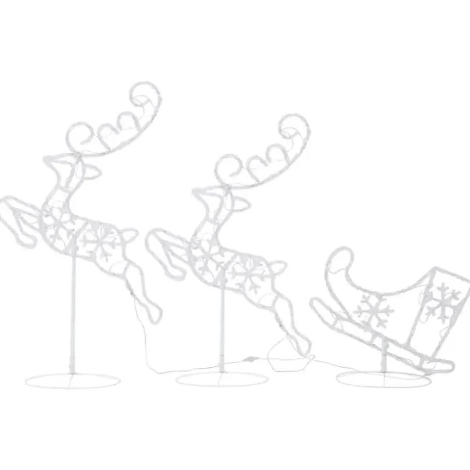 Versier je huis met deze vliegende rendieren en slee kerstdecoratie.