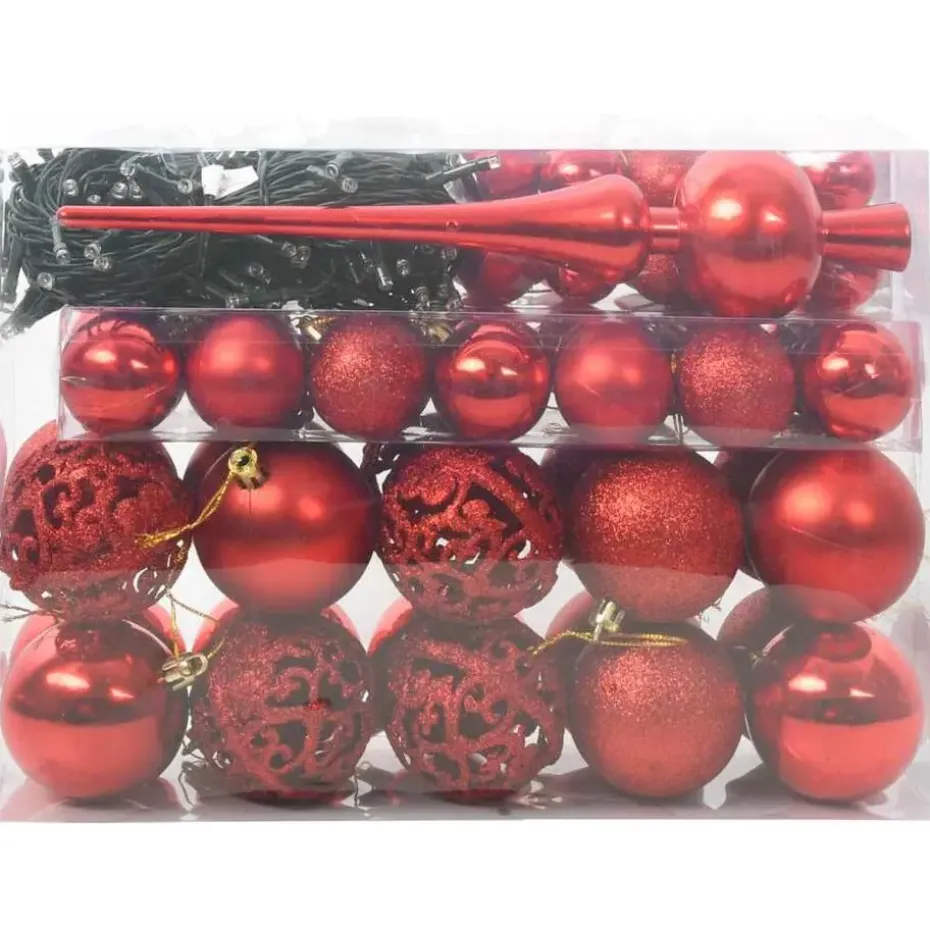 - Efficiënte LED-verlichting Deze kerstballenset heeft LED-lichtsnoeren die energiezuinig zijn en een gezellige verlichting geven. De lampen stralen een zachte gloed uit die de feeststemming verhoogt zonder je energierekening te verhogen, wat het zowel ecologisch als budgetvriendelijk maakt.