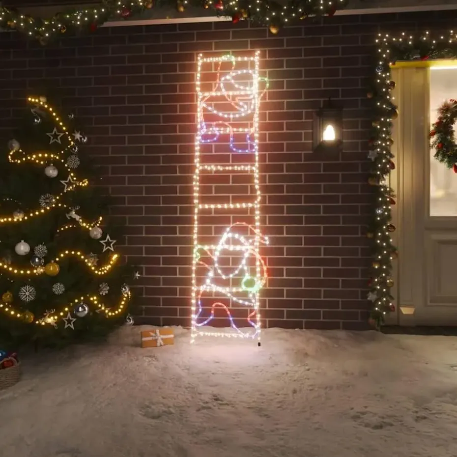 Dit in het oog springende figuur van een kerstman op een ladder is een perfecte keuze om je tuin en je interieur op te fleuren.