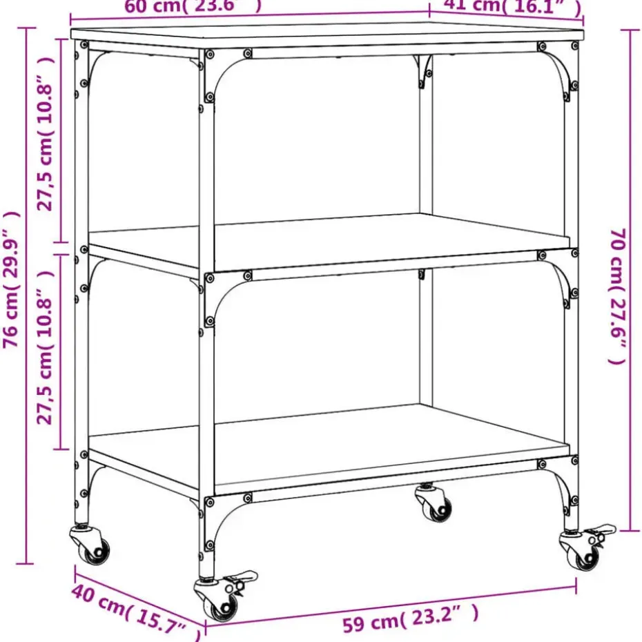 - Afmetingen met wielen: 60 x 41 x 76 cm (L x B x H)