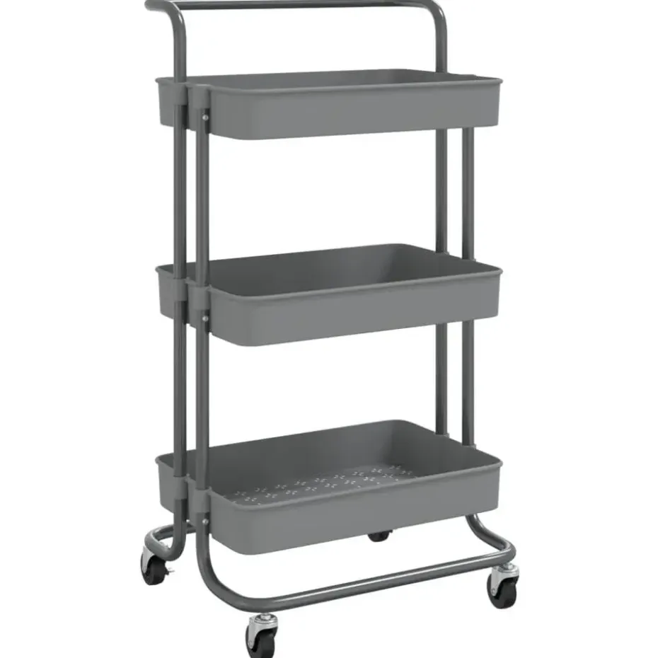 Deze huishoudelijke trolley, met praktisch handvat, is gemaakt van sterk ABS-kunststof met ijzeren buizen, waardoor hij stevig en duurzaam is. Ook heeft de ruimtebesparende kar 4 wielen, waarvan 2 met remmen voor eenvoudig verplaatsen en vastzetten. De uitneembare manden zijn sterk genoeg om extra opbergruimte te bieden en de ruimte volledig te benutten. Daarnaast is de trolley ideaal voor het opbergen van speelgoed, sleutels, etenswaren, enz.