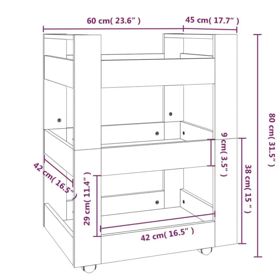 - Praktische wielen: de trolley is ontworpen met 4 wielen, waardoor je deze opbergkar gemakkelijk kunt verplaatsen en hem kunt gebruiken waar je maar wilt.