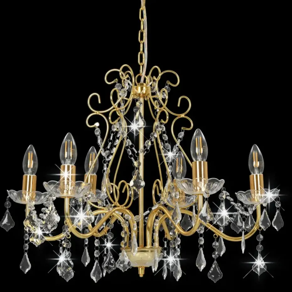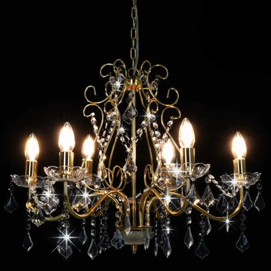 De kristallen kralen en het 6-armige frame zorgen voor een elegante charme en een optimale verlichting. Je kunt ervoor kiezen om E14 peertjes met verschillende lichtkleuren te gebruiken om een sfeer van ontspanning en rust te creëren.
