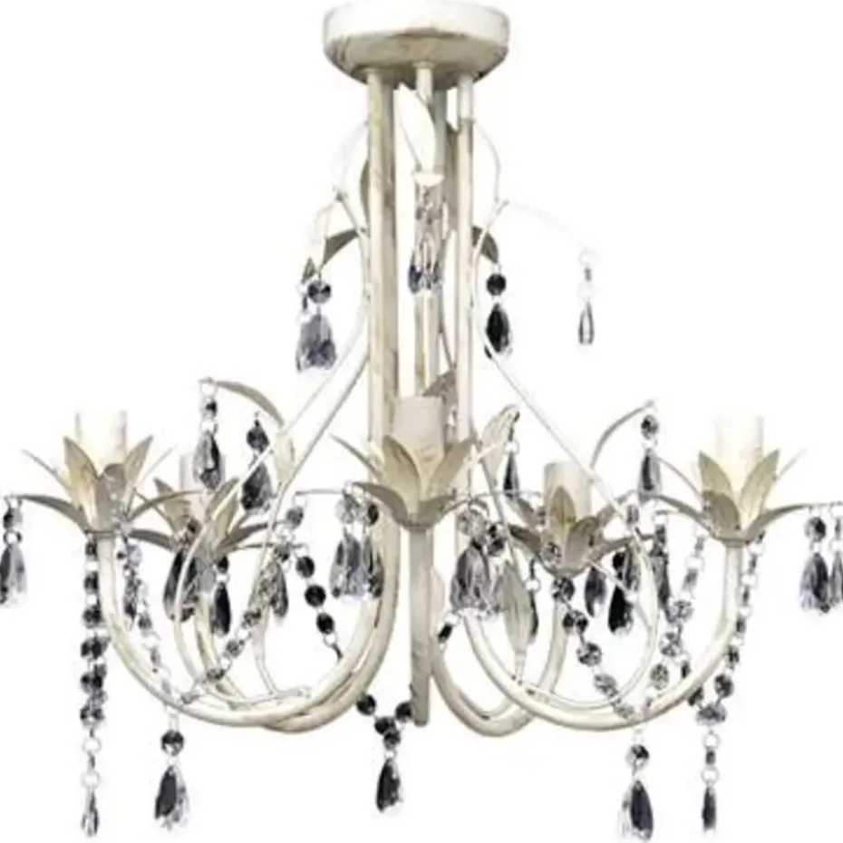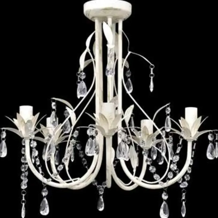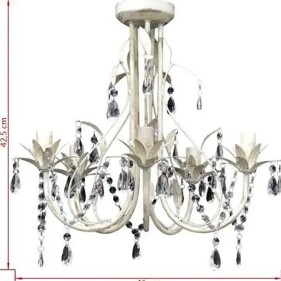 Deze prachtige witte en elegante kristallen kroonluchter, met 5 lampen, heeft een klassiek design, ideaal voor elk huis! Dankzij de koninklijke kristallen zult uw huis prachtig verlicht worden. Daarnaast kunt u uw kamer omtoveren tot een luxe kamer zonder veel te hoeven spenderen. De lamp heeft een afmeting van 46 x 42,5 cm (diameter x h).