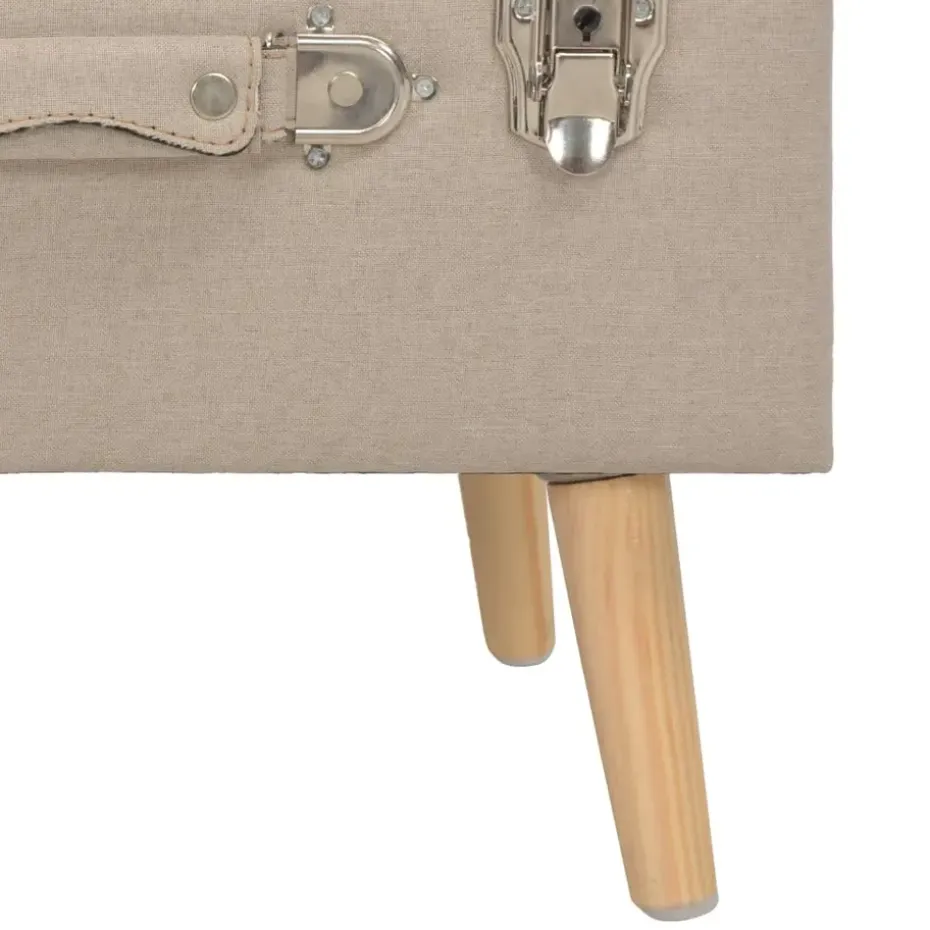 Deze kruk is bekleed met stof en gevoerd met schuim voor extra comfort. De massief houten poten maken de hocker stabiel en duurzaam en geven hem een elegante charme. Hij beschikt over een opbergvak onder de zitting voor extra opbergruimte.