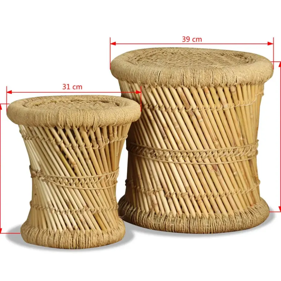 Deze set bestaat uit 2 bamboe krukken met een aantrekkelijk, natuurlijk ontwerp. Deze handige krukken worden de blikvangers van je eetkamer, tuin of terras. Dankzij het rustieke geweven ontwerp en het gebruik van natuurlijke materialen kunnen onze krukken op verschillende plaatsen worden gebruikt, zoals in huis, in de tuin of in cafés. Ze kunnen ook gebruikt worden als bijzettafels.