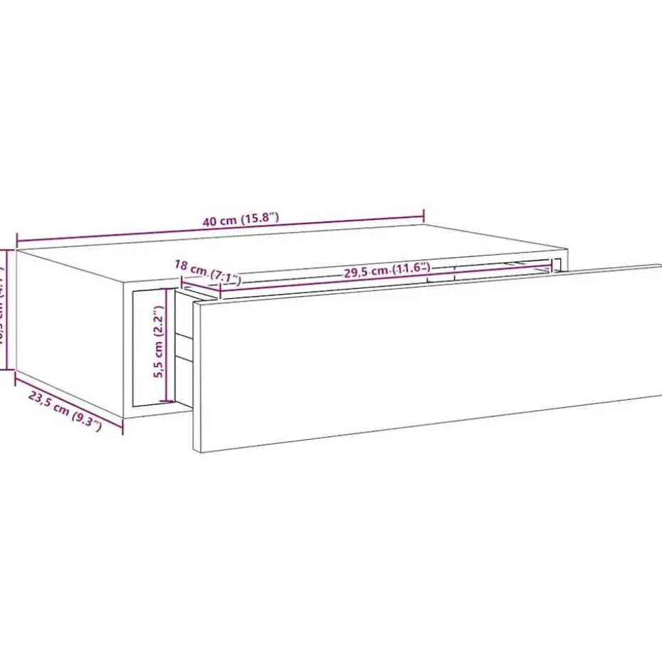 - Afmetingen lade: 29,5 x 18 x 5,5 cm (B x D x H)