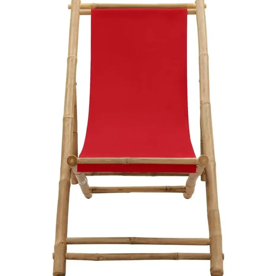 Deze van bamboe en canvas gemaakte ligstoel is een ideale keuze voor in je tuin of om te relaxen op het strand of de camping.