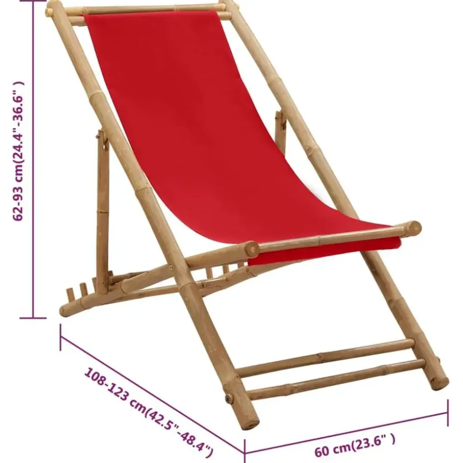Deze stoel is gemaakt van bamboe, een materiaal dat gekenmerkt wordt door goede weerbestendigheid en duurzaamheid. De stoel kan in 4 posities worden versteld zodat je de meest comfortabele zit- of ligpositie kunt bepalen. Het canvas maakt de strandstoel erg comfortabel om op te zitten. Dankzij het inklapbare ontwerp kan de stoel worden ingeklapt als hij niet gebruikt wordt, om ruimte te besparen.