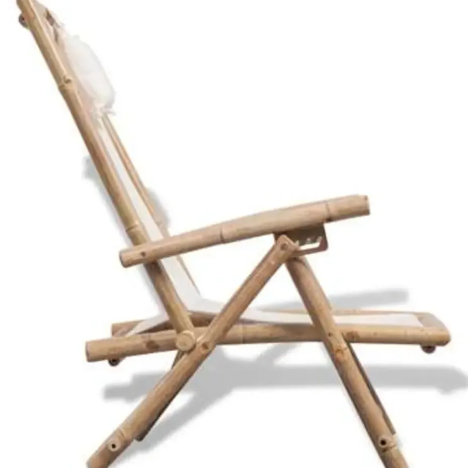 Hij is gemaakt van hoogwaardige bamboe, wat de stoel weerbestendig en duurzaam maakt. Het canvas maakt de stoel erg comfortabel om op te zitten. De rugleuning van de stoel kan in 4 posities worden versteld.