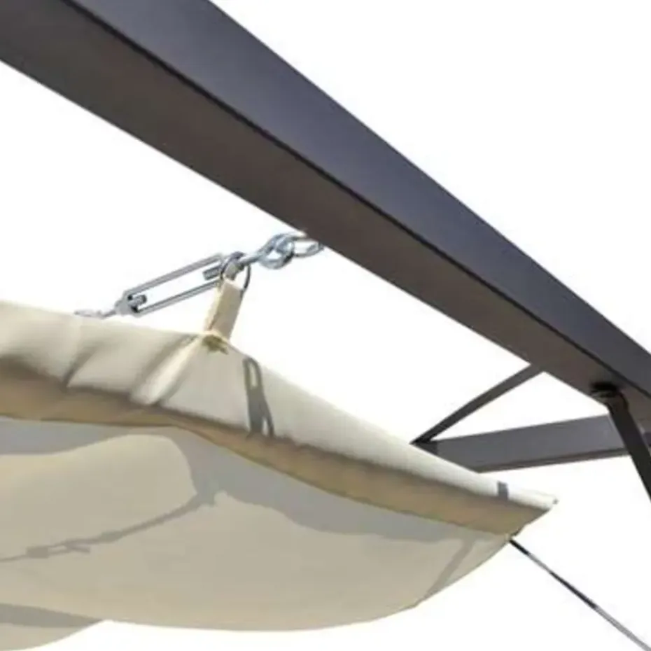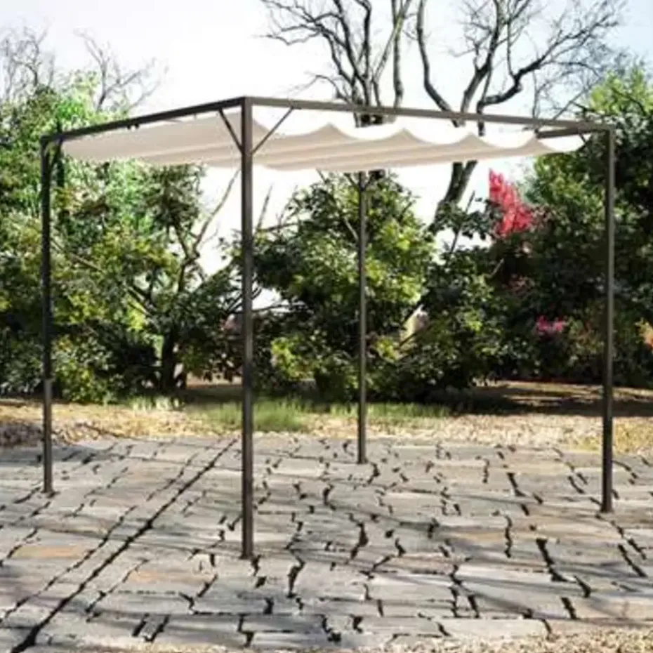 Dit tuinpaviljoen biedt je familie en je vrienden comfort en bescherming tegen de elementen. Het is geschikt voor verschillende weersomstandigheden; het uittrekbare dak beschermt je tegen schadelijke uv-stralen en tegen de regen. Het tuinpaviljoen is gemaakt van een gepoedercoat metalen frame en een waterbestendig 100% polyester doek.
