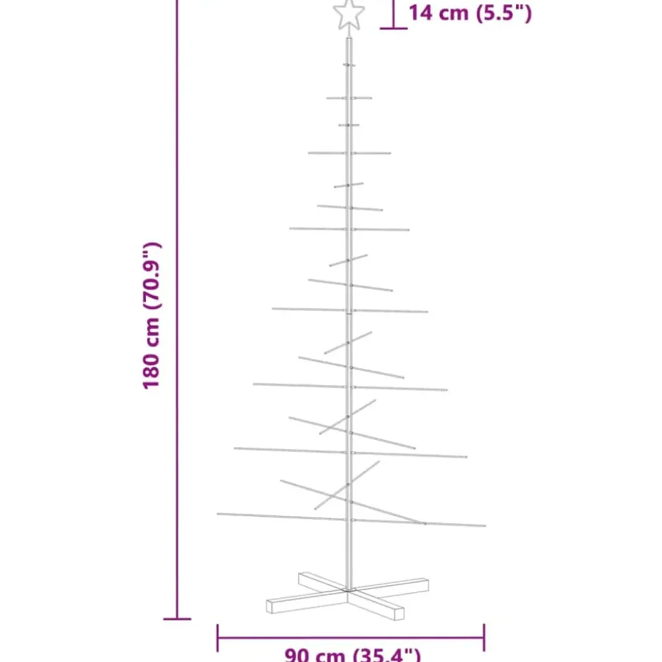 - Stevige constructie: de standaard van de kerstdecoratie heeft een stalen frame en wordt voor stabiliteit en stevigheid door een stevige houten basis ondersteund. Elke tak heeft 2 siliconen hoezen voor fixatie, waardoor de takken op hun plaats blijven zitten.