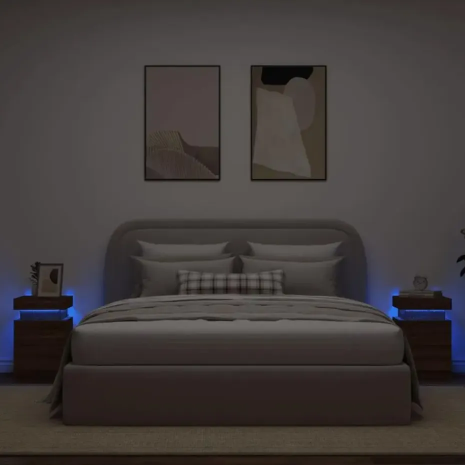 Richt je slaapkamer in met deze moderne nachtkastjes met LED-verlichting. Ze passen goed bij alle meubelstijlen in je huis.