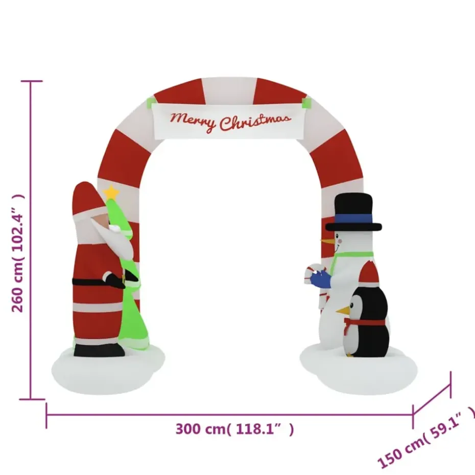 - Ingebouwde LED-verlichting: de opblaasbare boog heeft ingebouwde LED-lampjes, die de kerstsfeer versterken en je huis laten opvallen.