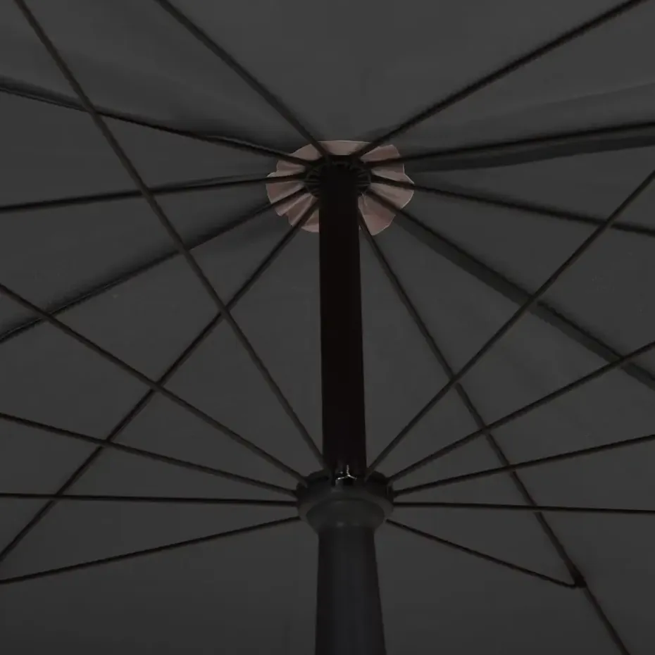 De parasol is gemaakt van uv-beschermend en anti-vervagend polyester zodat hij je optimaal beschermd tegen de zon en gemakkelijk schoon te maken is. Door de sterke stalen paal en de 10 stevige baleinen is de parasol zeer stabiel en duurzaam. Het exclusieve ontwerp van deze parasol stelt je in staat om de parasol te kantelen om zo de zon te blokkeren. Deze tuinparasol kan eenvoudig geopend en gesloten worden dankzij het zwengelmechanisme.