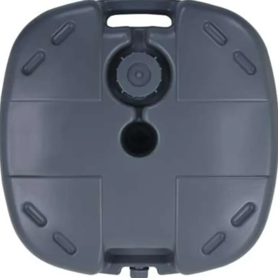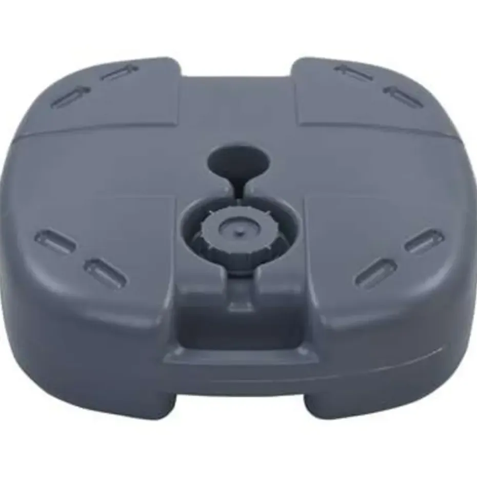 Deze parasolvoet is ontworpen om te worden gevuld met water of zand. Hij dient als een stevige en stabiele basis voor je parasol.