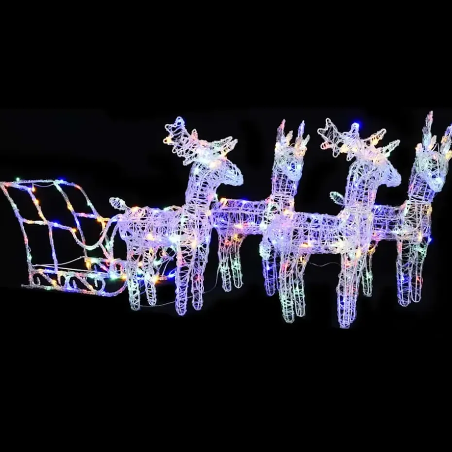 Verfraai je tuin of huis met deze unieke versiering. Deze 4 rendieren en slee brengen in combinatie met kleurrijke lampjes de ware kerstsfeer naar voren!