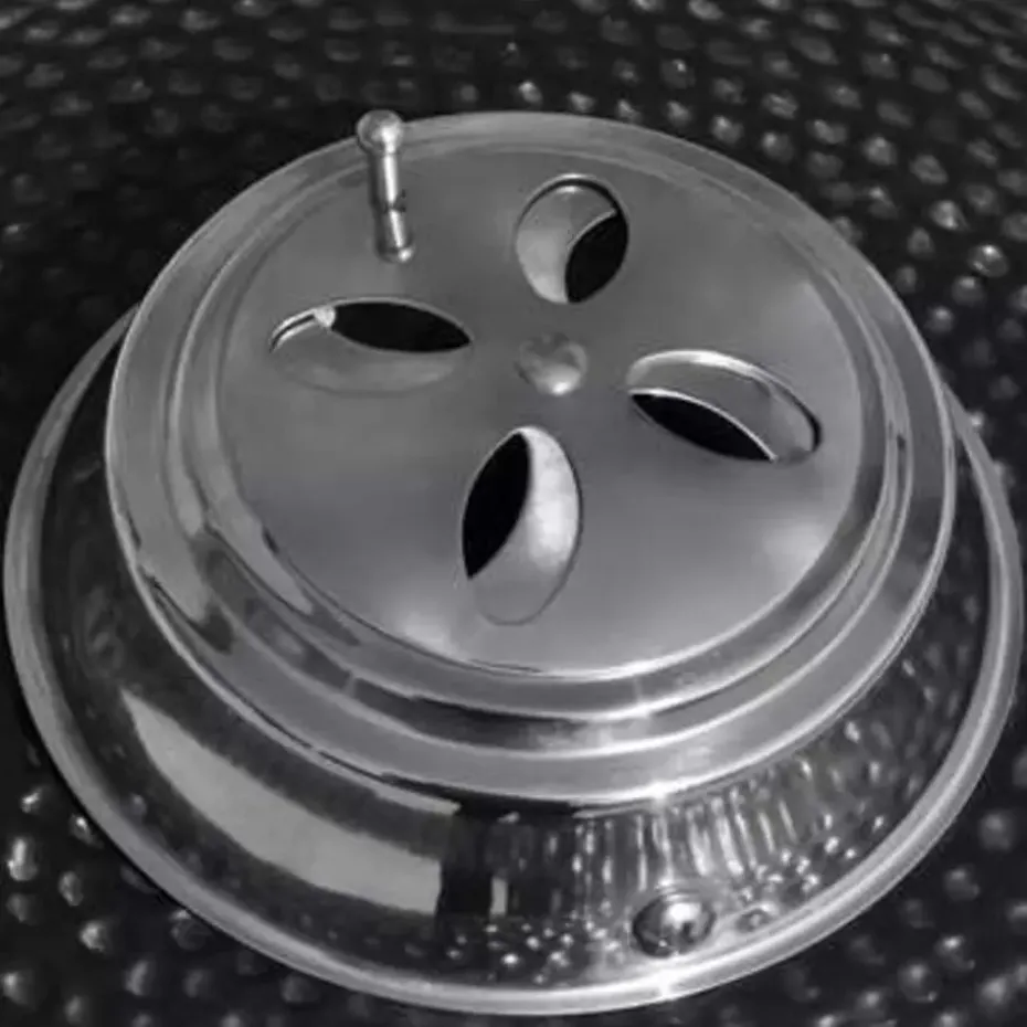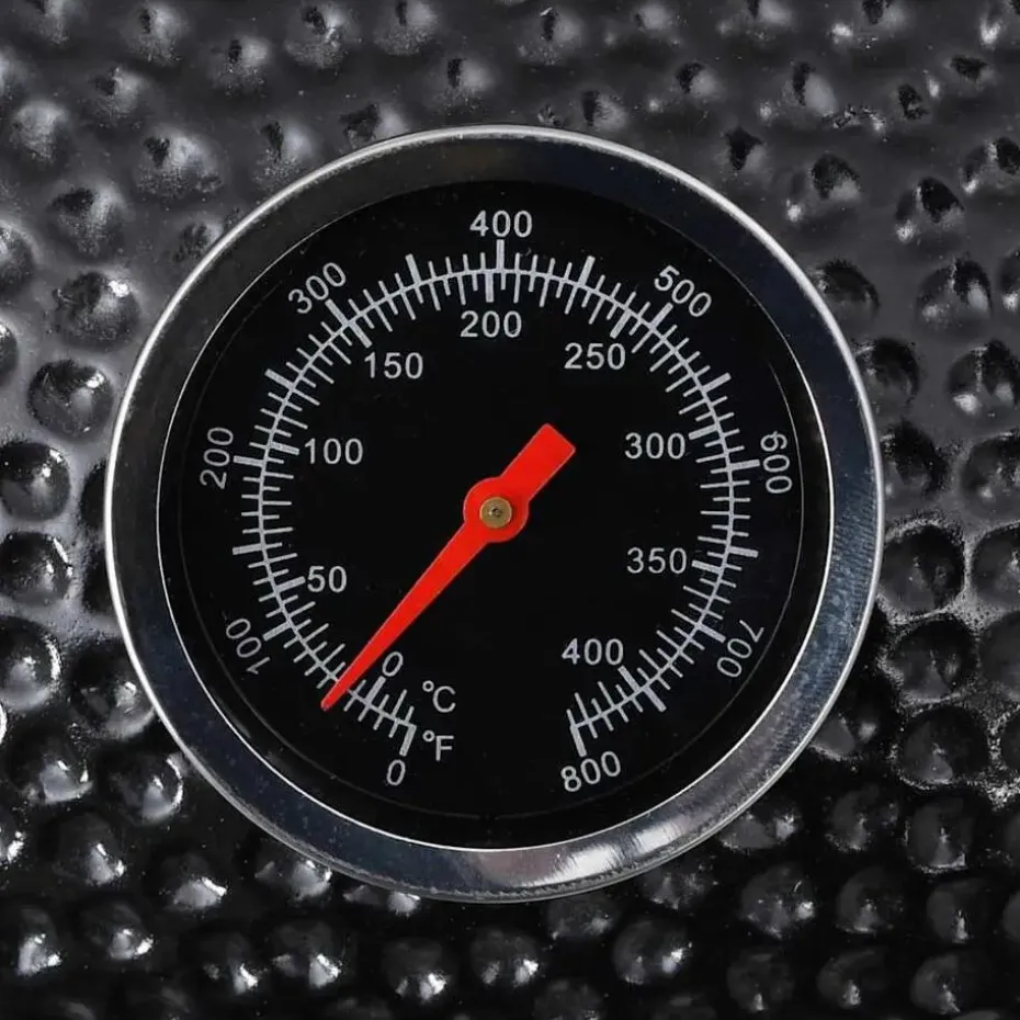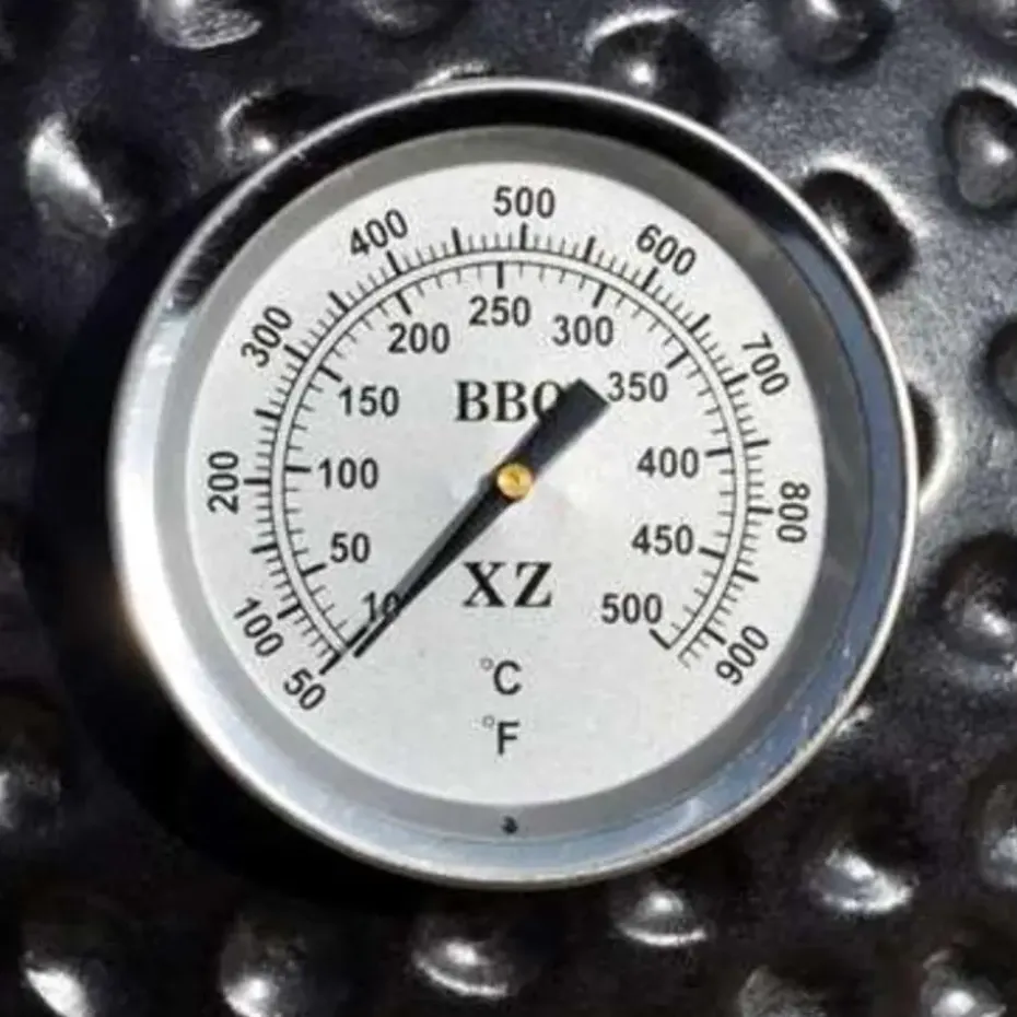 Deze keramische barbecue heeft een zeer stevige scharnierdeksel met een luchtopening en een thermometer aan de bovenkant. Dankzij de gelaagde opening kan je de luchtstroom en de temperatuur eenvoudig regelen.