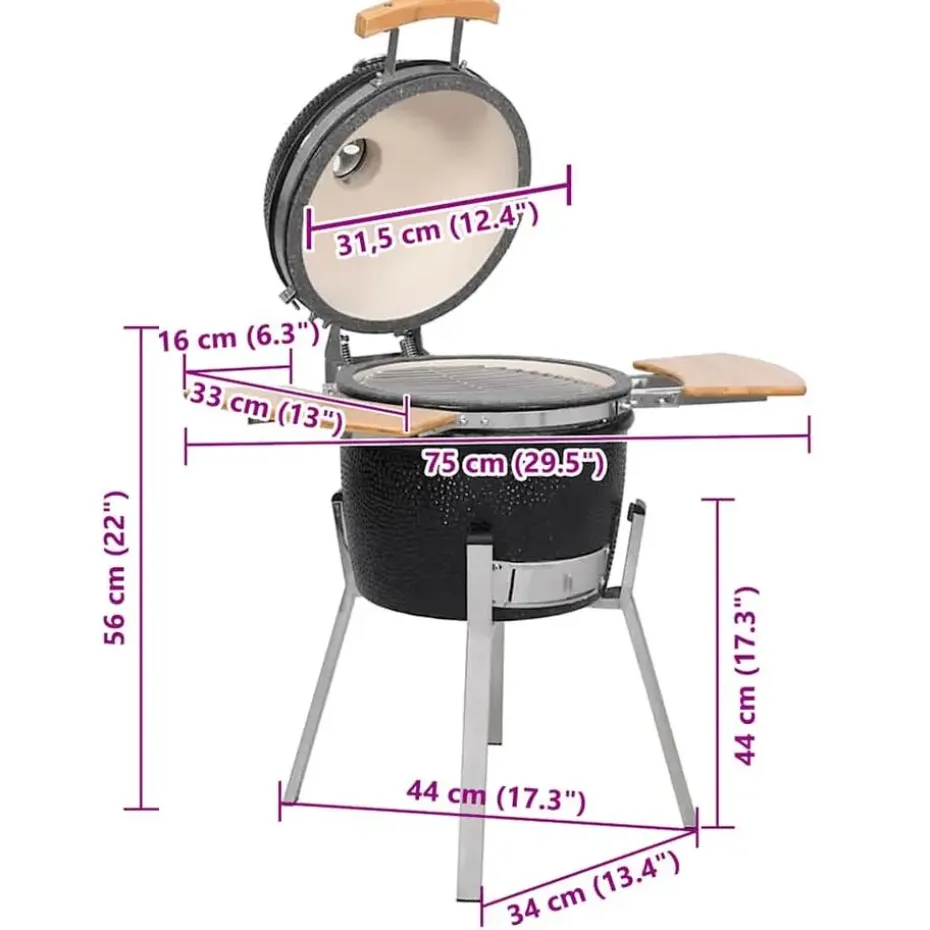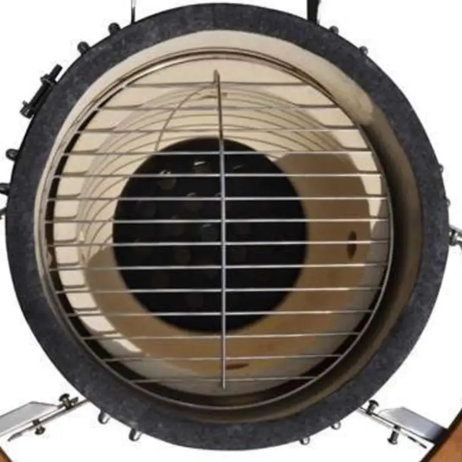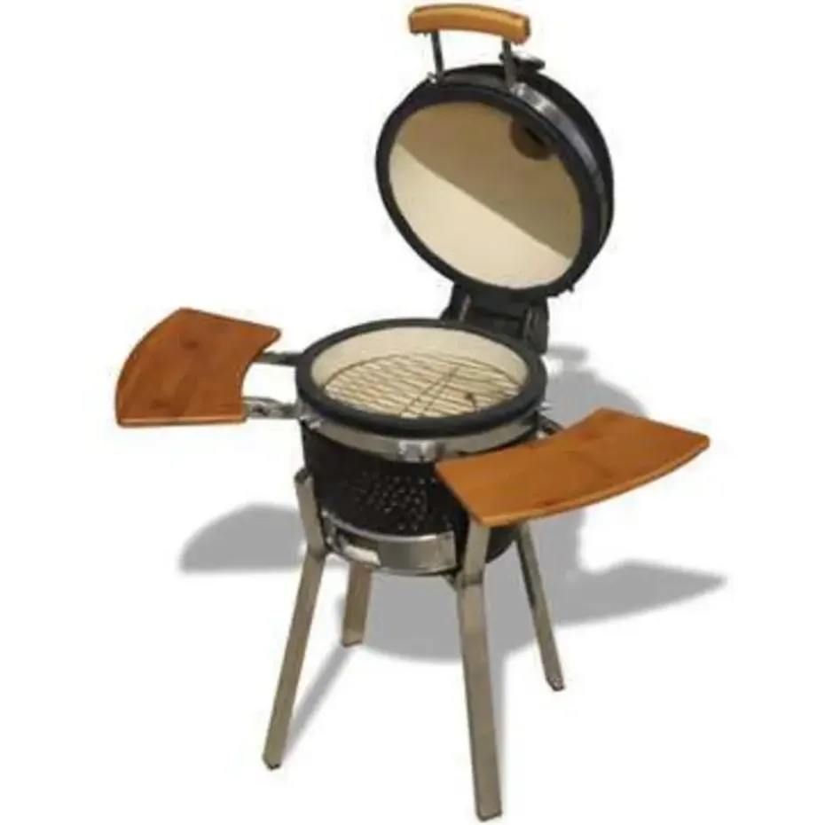 Deze keramische kamado barbecue, die op kolen en hout werkt, heeft een groot rooster met een diameter van 27 cm. Deze grill biedt meerdere functies zoals grillen, bakken, roken, koken en warm houden.