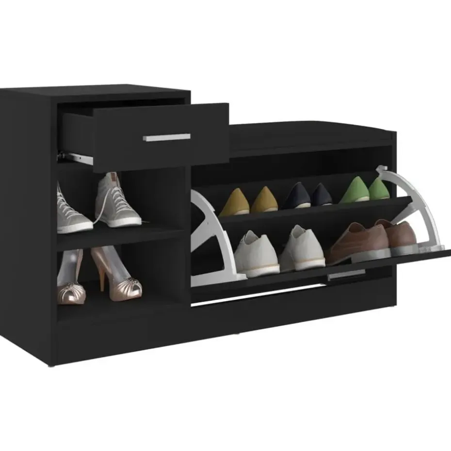 De schoenenkast is gemaakt van hoogwaardig bewerkt hout, waardoor hij een verfijnde uitstraling heeft en stabiel en duurzaam is. Dankzij de kunstleren zitting is hij eenvoudig schoon te maken en kun je comfortabel zitten terwijl je je schoenen aan- of uittrekt. Deze opbergbank biedt voldoende opbergruimte en is een geweldig meubel voor hallen, gangen en woonruimtes.