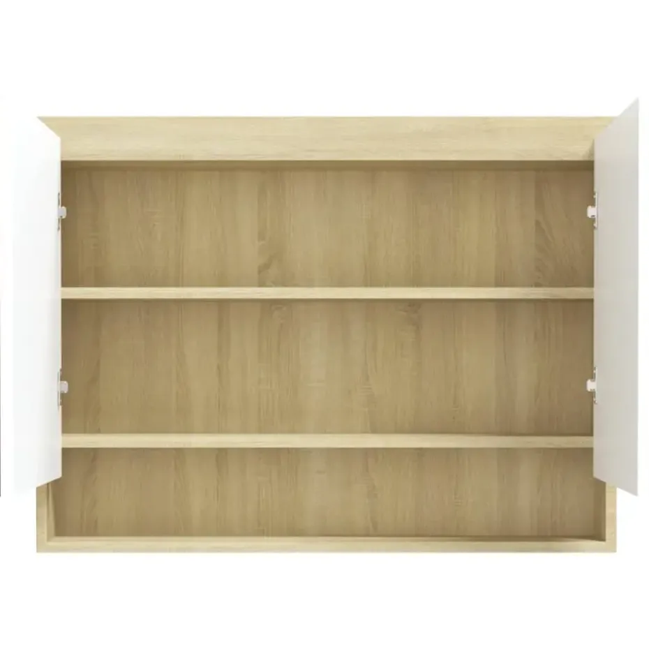 De wandspiegelkast is gemaakt van glas en MDF met melamine-oppervlak, waardoor hij duurzaam en stabiel is. De kast heeft 2 deuren en in totaal 3 vakken, waardoor hij voldoende opbergruimte biedt. Ze zijn ideaal voor het opbergen van je toiletartikelen en badspullen, zoals zeep, shampoo en tandpasta.