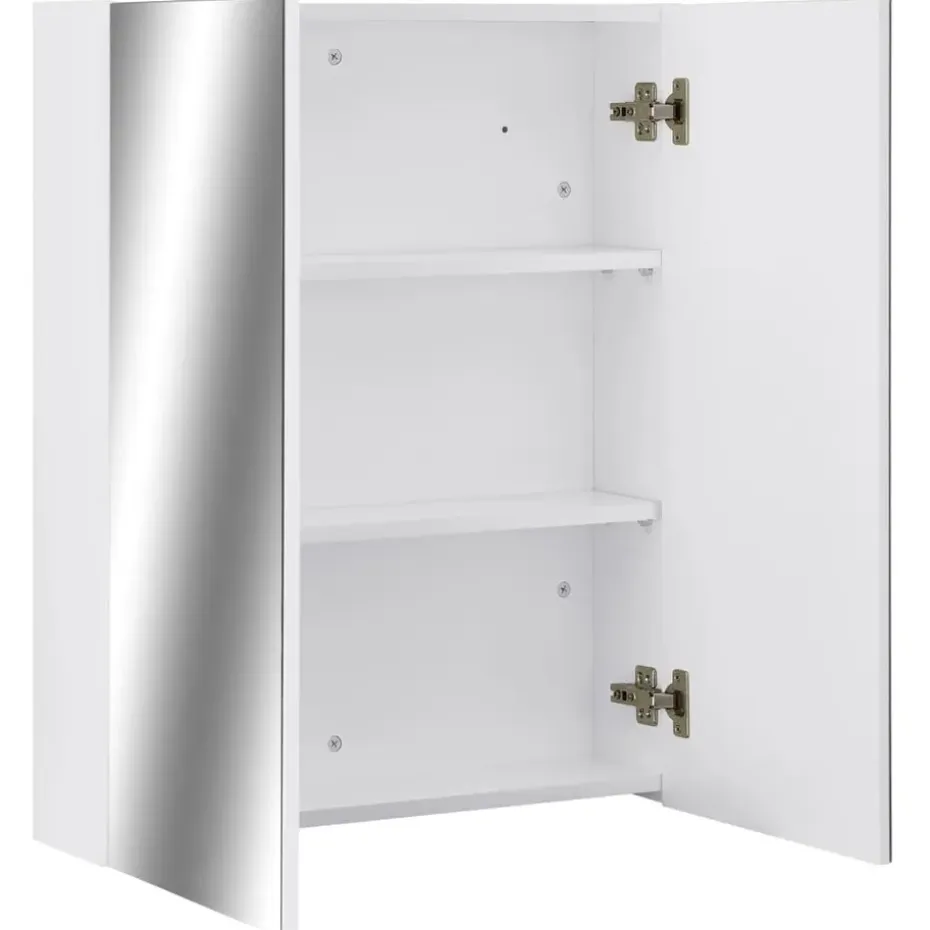 De wandspiegelkast is gemaakt van glas en MDF met melamine-oppervlak, waardoor hij duurzaam en stabiel is. De kast heeft 2 deuren en in totaal 3 vakken, waardoor hij voldoende opbergruimte biedt. Ze zijn ideaal voor het opbergen van je toiletartikelen en badspullen, zoals zeep, shampoo en tandpasta.