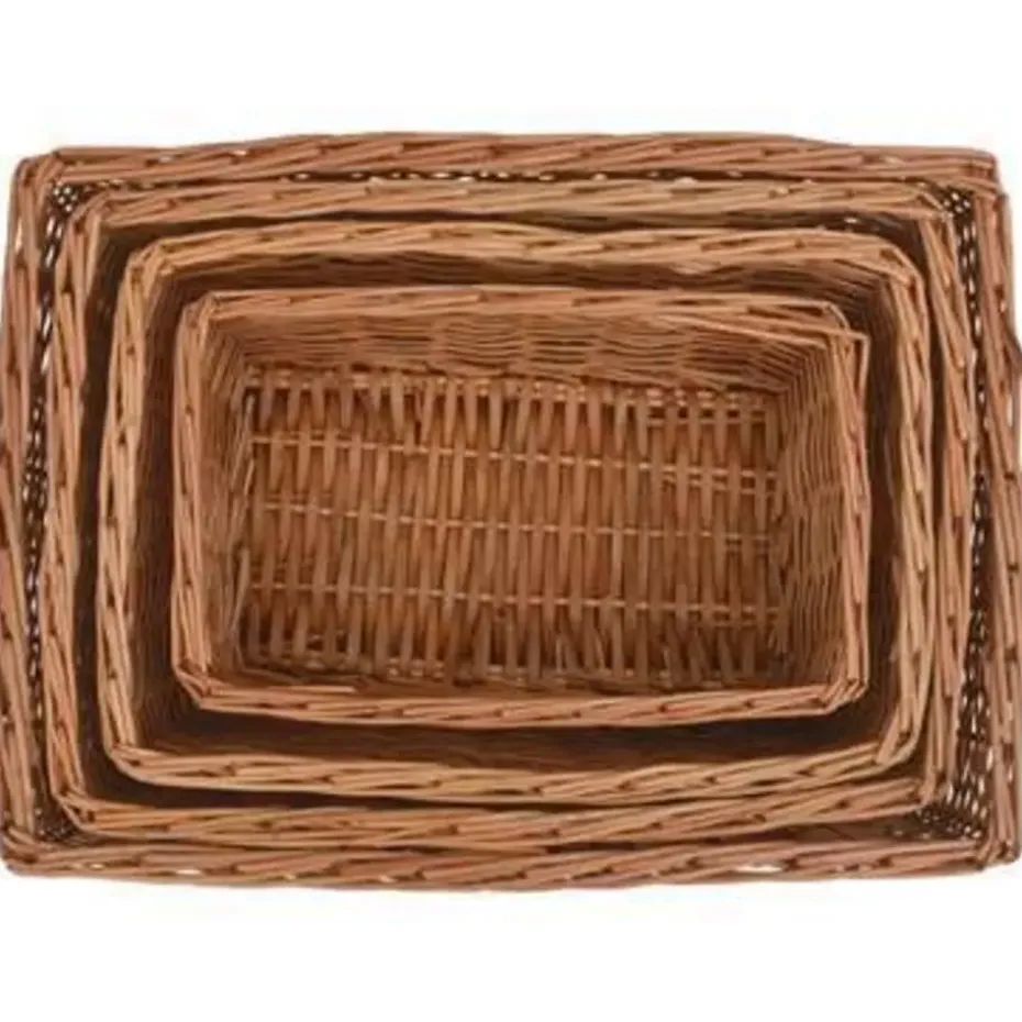 De manden zijn gemaakt van wilgen en zijn stevig en duurzaam. De rechthoekige boxen zijn handig voor dagelijks gebruik en de grootste kan als wasmand gebruikt worden. De aantrekkelijke geweven stijl geeft de set een rustieke charme. Dankzij een ruimtebesparend ontwerp kunnen ze in de grootste mand worden geplaatst wanneer ze niet worden gebruikt.