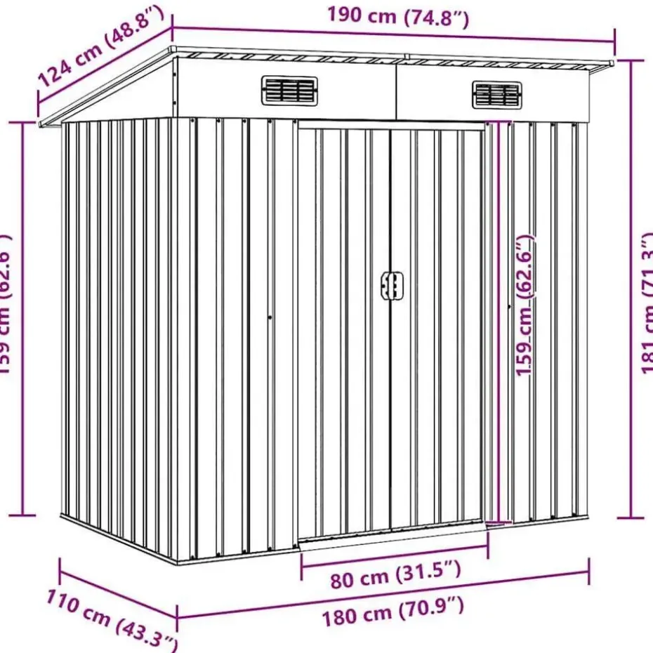 - Praktisch ontwerp: Deze opbergschuur heeft 2 ventilatieopeningen aan de voorkant, wat zorgt voor uitstekende ventilatie. De dubbele schuifdeuren aan de voorkant zorgen voor gemakkelijke in- en uitgang.