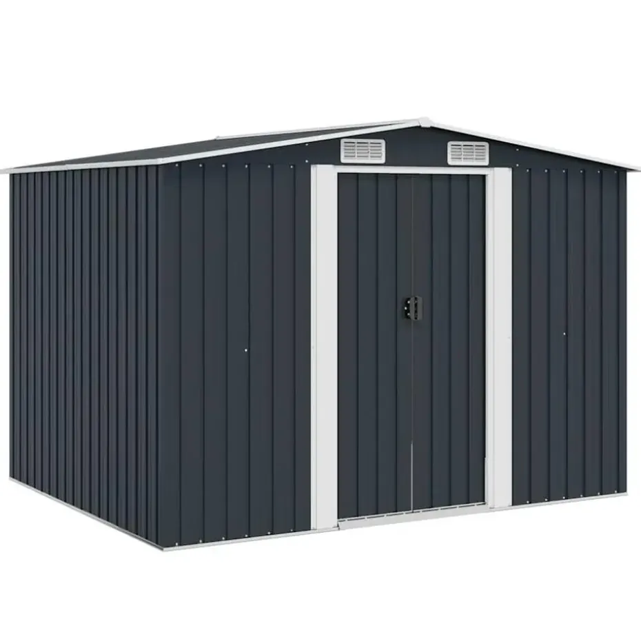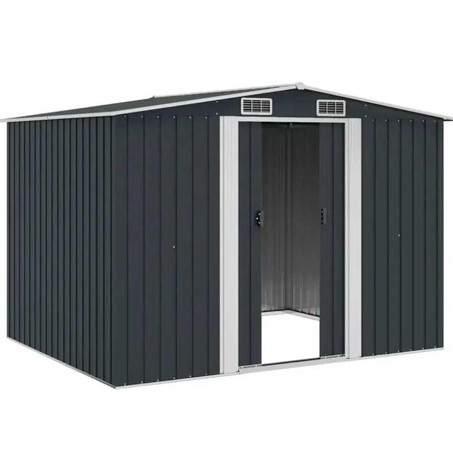- Praktisch ontwerp: Deze opbergschuur heeft 4 ventilatieopeningen, 2 aan de voorkant en 2 aan de achterkant, voor uitstekende ventilatie. De dubbele schuifdeuren aan de voorkant zorgen voor gemakkelijke in- en uitgang.
