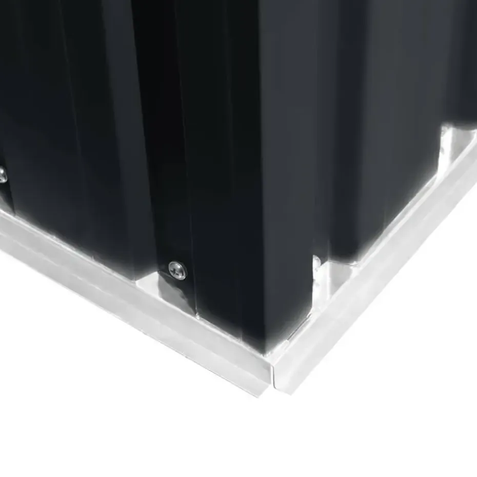 - Duurzaam materiaal: De gegalvaniseerde stalen constructie maakt hem duurzaam en sterk, waardoor hij niet corrodeert of anderszins wordt aangetast door extreme weersomstandigheden. Hij wordt geleverd met een stalen vloerframe voor extra stabiliteit en is perfect voor een houten vloerafwerking (hout niet inbegrepen).