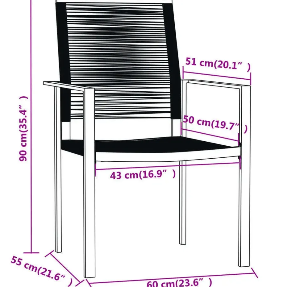 - Materiaal: hol PVC-rattan en gepoedercoat staal