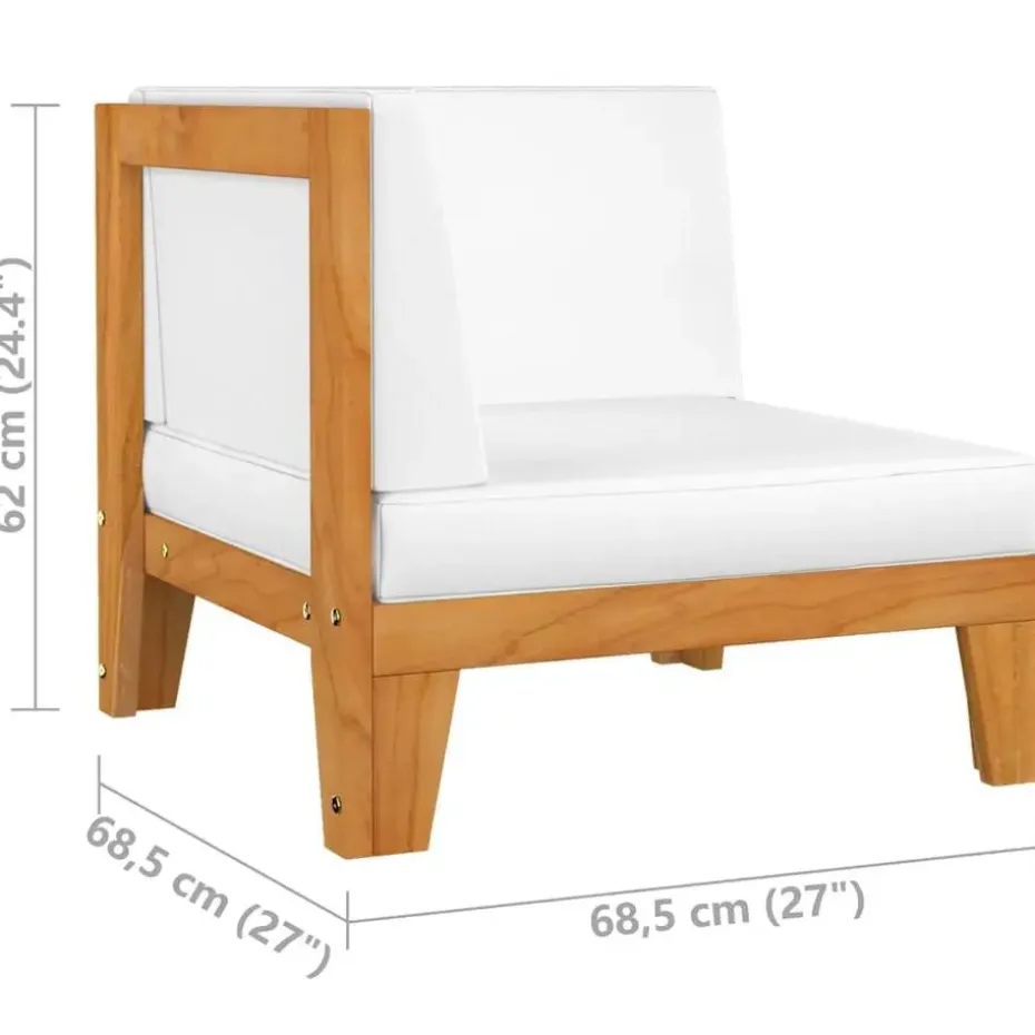 Met het tijdloze ontwerp voegt de loungeset een vleugje rustieke charme toe aan je terras, tuin of woonkamer. De tuinmeubelset is gemaakt van massief acaciahout, een tropisch hardhout, dat weerbestendig en zeer duurzaam is. Bovendien heeft hij een solide constructie en vereist hij weinig onderhoud. In combinatie met dik gevoerde kussens biedt deze set het hoogste comfort. Verder maakt het modulaire ontwerp het mogelijk om de set in elke gewenste opstelling te plaatsen.