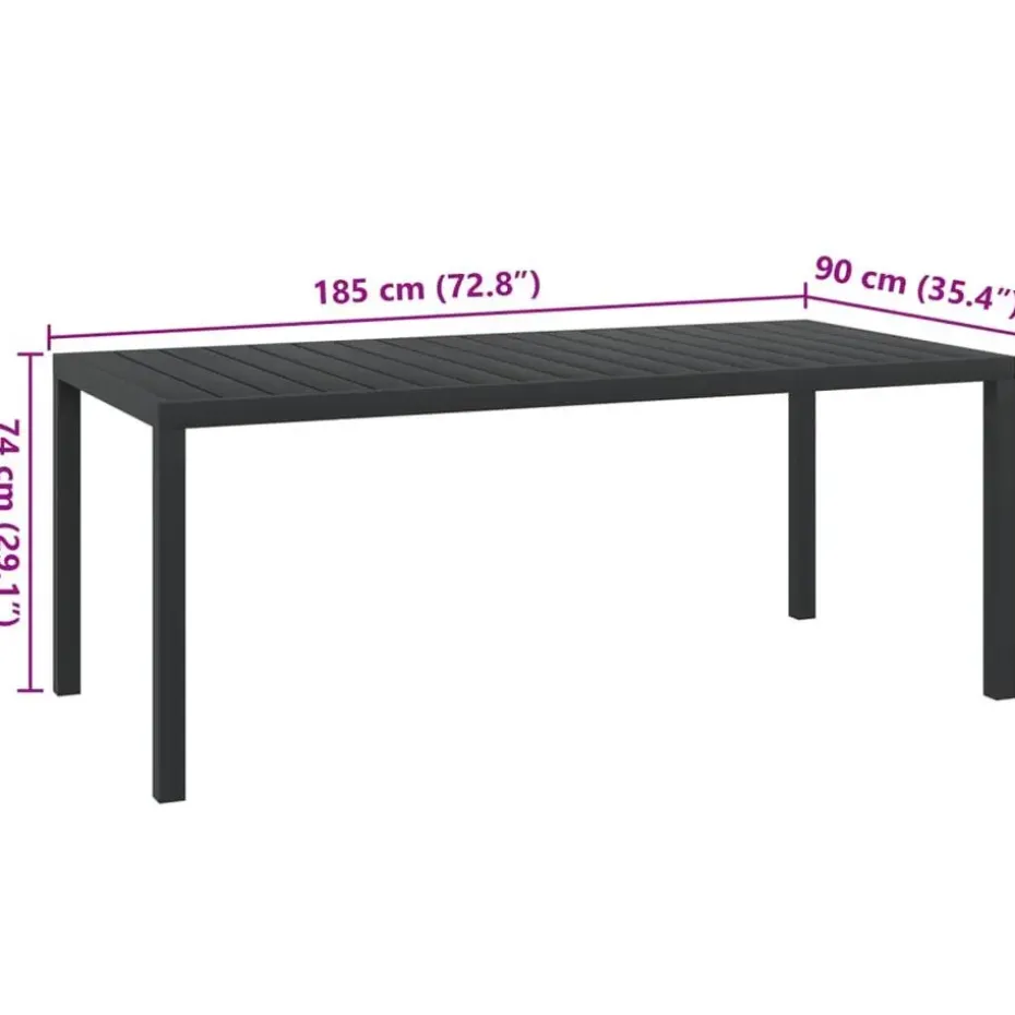 - Afmetingen tafel: 185 x 90 x 74 cm (L x B x H)