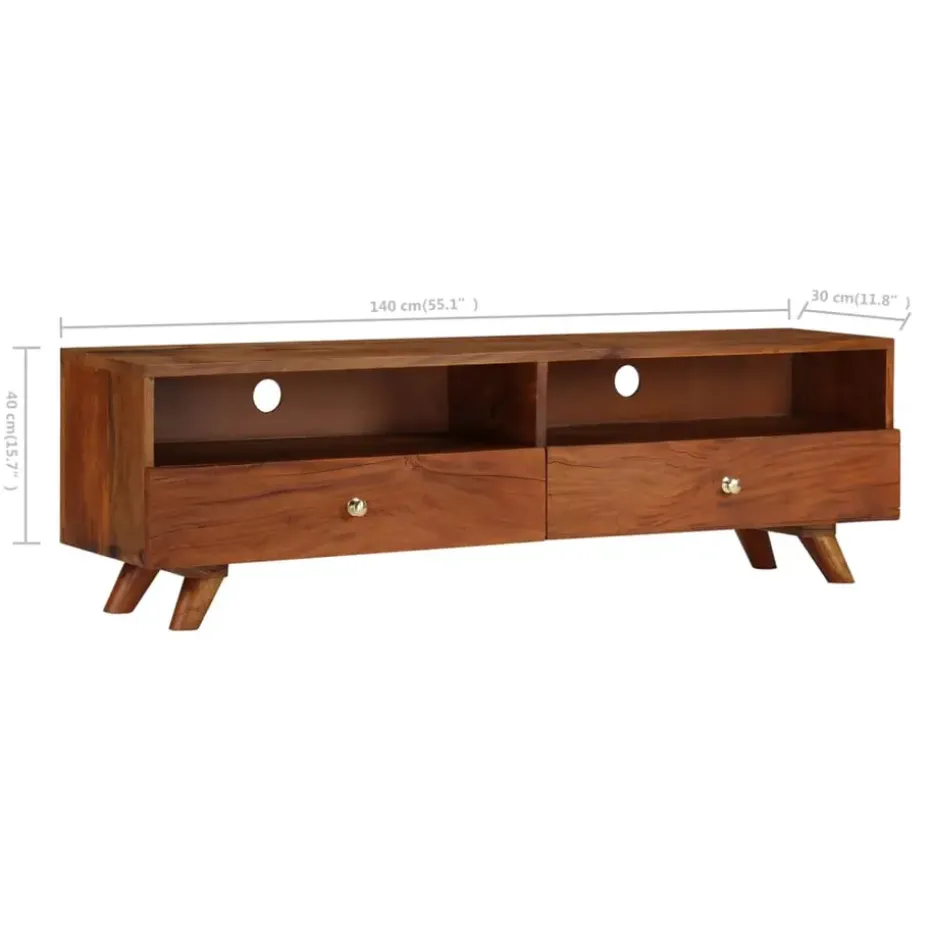 De houten retro tv-kast heeft een ingetogen, praktisch ontwerp en past bij elk interieur. De tv-standaard is zeer stabiel en duurzaam. Het meubel heeft 2 kasten en 2 open schappen om multimedia-apparaten, spelconsoles en tijdschriften op te plaatsen. De tv-standaard kan ook worden gebruikt als zijkast, hifi-kast, enz.