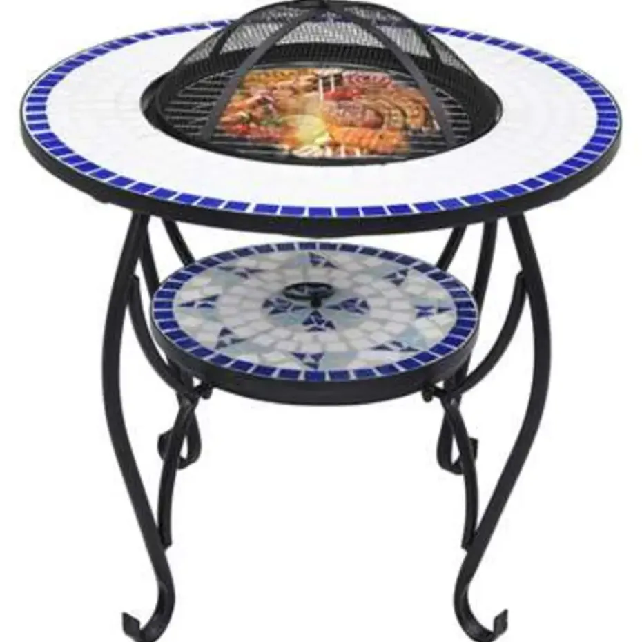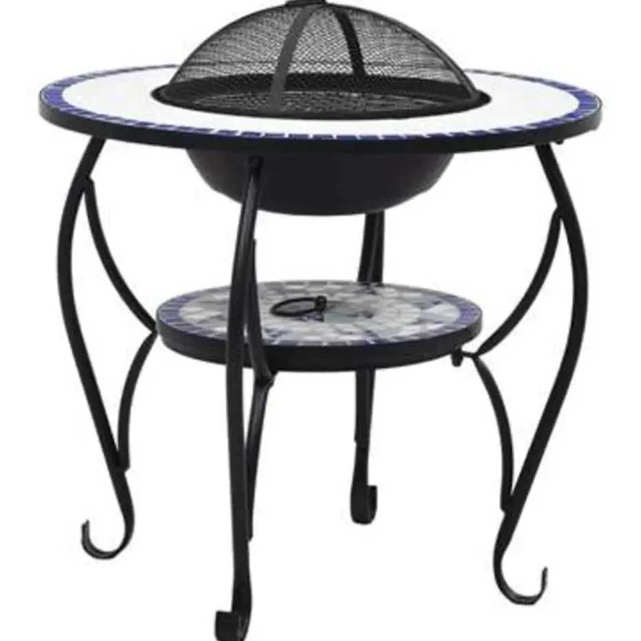 De vuurschaal is gemaakt van hoogwaardig staal en is uitstekend in het absorberen en uitstralen van warmte. Hij kan worden gebruikt met droog hout, houtblokken of houtskool. De vuurplaats wordt ondersteund door een driepotige standaard. Dankzij het inbegrepen veiligheidsgaas kijk je veilig naar het brandende vuur terwijl wordt voorkomen dat vonken en puin uit de schaal schieten. De poker kan worden gebruikt om het gaasdeksel te verwijderen en om de houtblokken of kolen te herschikken. Bovendien kan de vuurschaal ook als barbecue worden gebruikt. Het ronde, keramische oppervlak is een perfecte plek voor drankjes en braadbenodigdheden. Let op, dit product is niet geschikt om in koud weer buiten te staan.