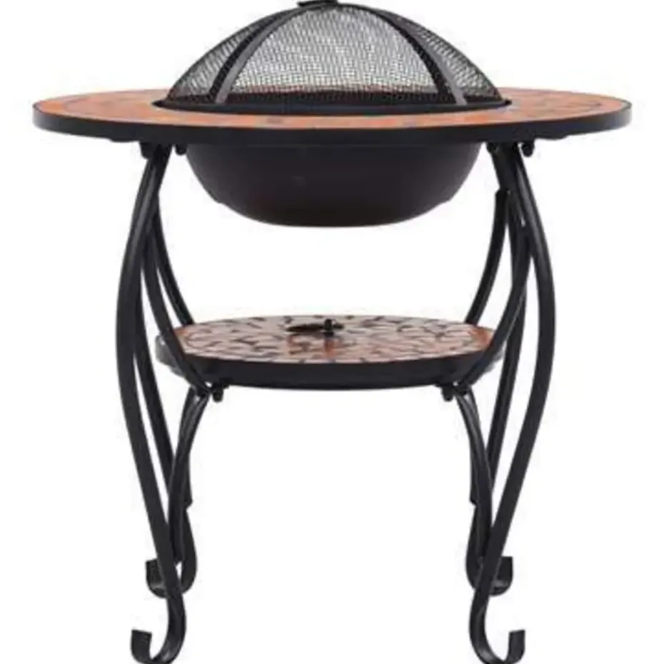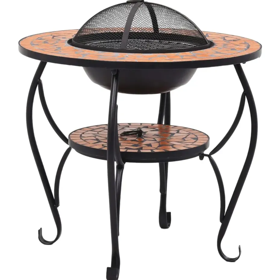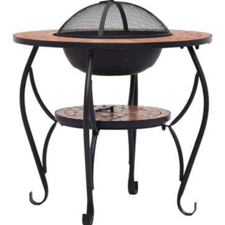De vuurschaal is gemaakt van hoogwaardig staal en is uitstekend in het absorberen en uitstralen van warmte. Hij kan worden gebruikt met droog hout, houtblokken of houtskool. De vuurplaats wordt ondersteund door een driepotige standaard. Dankzij het inbegrepen veiligheidsgaas kijk je veilig naar het brandende vuur terwijl wordt voorkomen dat vonken en puin uit de schaal schieten. De poker kan worden gebruikt om het gaasdeksel te verwijderen en om de houtblokken of kolen te herschikken. Bovendien kan de vuurschaal ook als barbecue worden gebruikt. Het ronde, keramische oppervlak is een perfecte plek voor drankjes en braadbenodigdheden. Let op, dit product is niet geschikt om in koud weer buiten te staan.