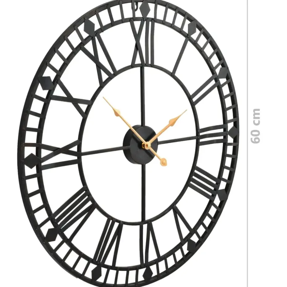 De klok heeft een stevig metalen frame en is zeer duurzaam. De klok is uitgerust met hoogwaardige quartz-mechanismen waardoor hij zeer nauwkeurig de tijd bijhoudt. De Romeinse cijfers dragen bij aan de vintage stijl van de klok. De klok kan gemakkelijk aan de muur worden opgehangen en hij geeft je interieur een nette en opgeruimde uitstraling.
