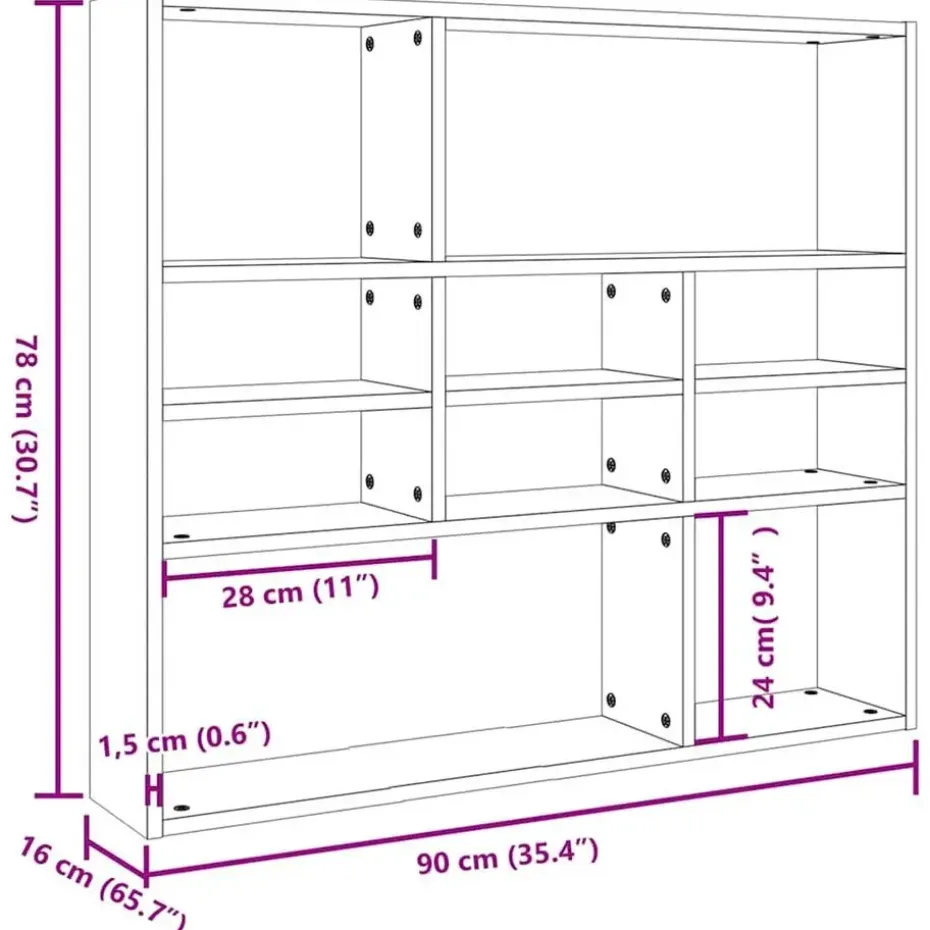 Dit wandmeubel is gemaakt van bewerkt hout en is stevig en duurzaam. Het heeft 10 open vakken zodat er voldoende plek is voor het plaatsen van boeken, verzamelobjecten, foto’s, prijzen, potplanten, enz. Bovendien is dit meubel gemakkelijk schoon te maken met een vochtige doek.