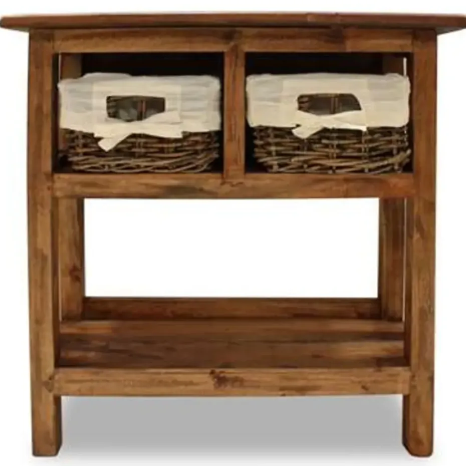 Deze houten wandtafel is een perfecte keuze als je een vleugje rustieke charme aan je interieur wilt toevoegen. De tafel heeft 2 uitneembare rattan manden en 1 schap waardoor er voldoende opbergruimte is. De verwijderbare manden zijn niet alleen praktisch, maar voegen ook een decoratief vleugje toe.