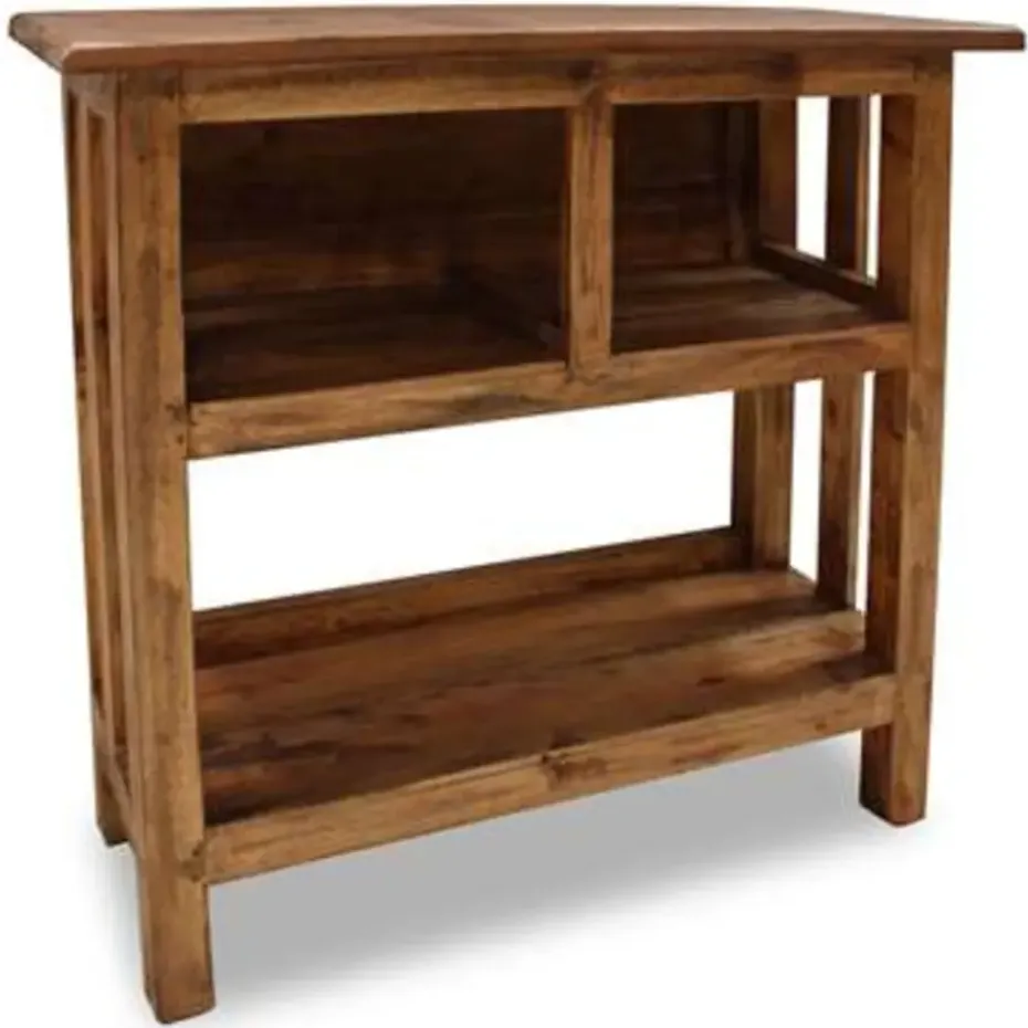 Deze massief houten consoletafel is gemaakt van massief mahoniehout en is buitengewoon duurzaam en stevig. Mahonie is een tropisch hardhout dat opvalt door zijn schoonheid, duurzaamheid en kleur. Er is speciaal vakmanschap gebruikt om dit item een vintage, warme en authentieke uitstraling te geven.