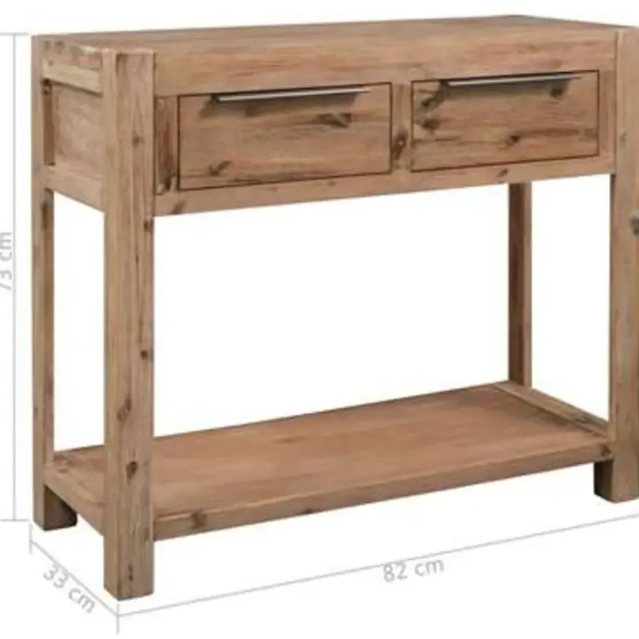 Deze consoletafel is gemaakt van massief acaciahout met een geborstelde afwerking, MDF en acaciafineer, waardoor hij zeer duurzaam en stabiel is. De wandtafel heeft een stevig blad, waarop je decoratieve voorwerpen zoals fruitmanden en vazen kunt plaatsen. Het schap en de 2 lades bieden voldoende ruimte om allerlei spulletjes georganiseerd en binnen handbereik te houden. Dit product vereist montage.