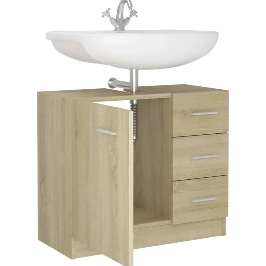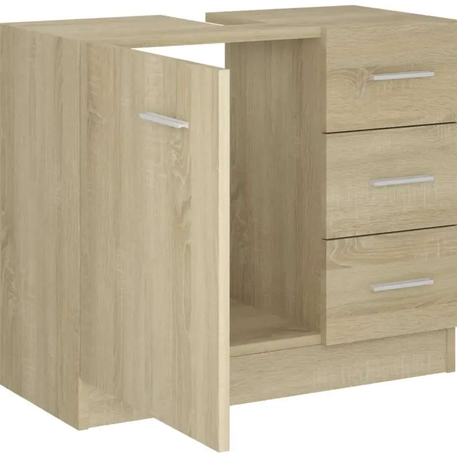 Deze kast is gemaakt van bewerkt hout, waardoor hij stevig en stabiel is. De opbergkast heeft 1 vak en 3 lades, waardoor je verschillende opbergopties en extra ruimte hebt om spullen in je badkamer op te bergen. Het blad van het kastje is ideaal om een wasbak te plaatsen. Bovendien is de kast eenvoudig te reinigen met een vochtige doek.